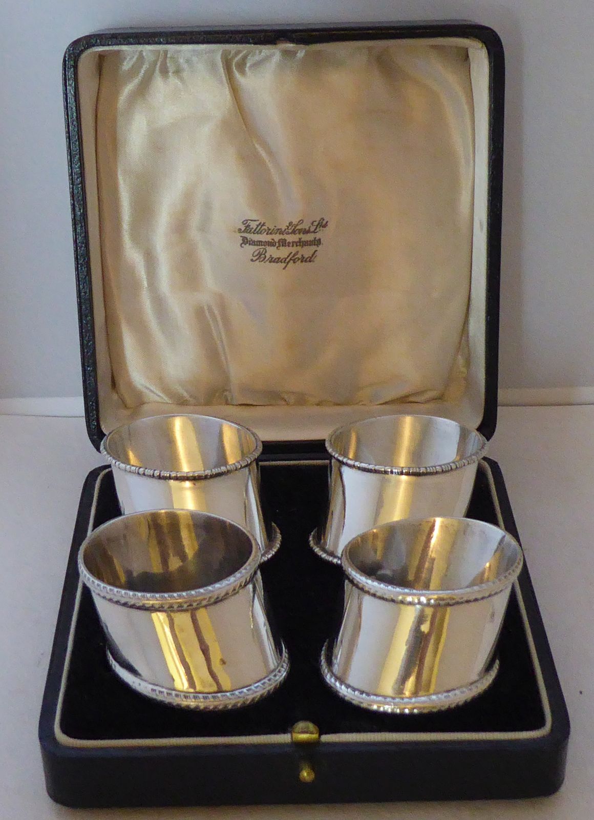 Boxed Set 4 Birmingham 1910 Hallmarked Solid Silver Napkin Rings Serviette Ring