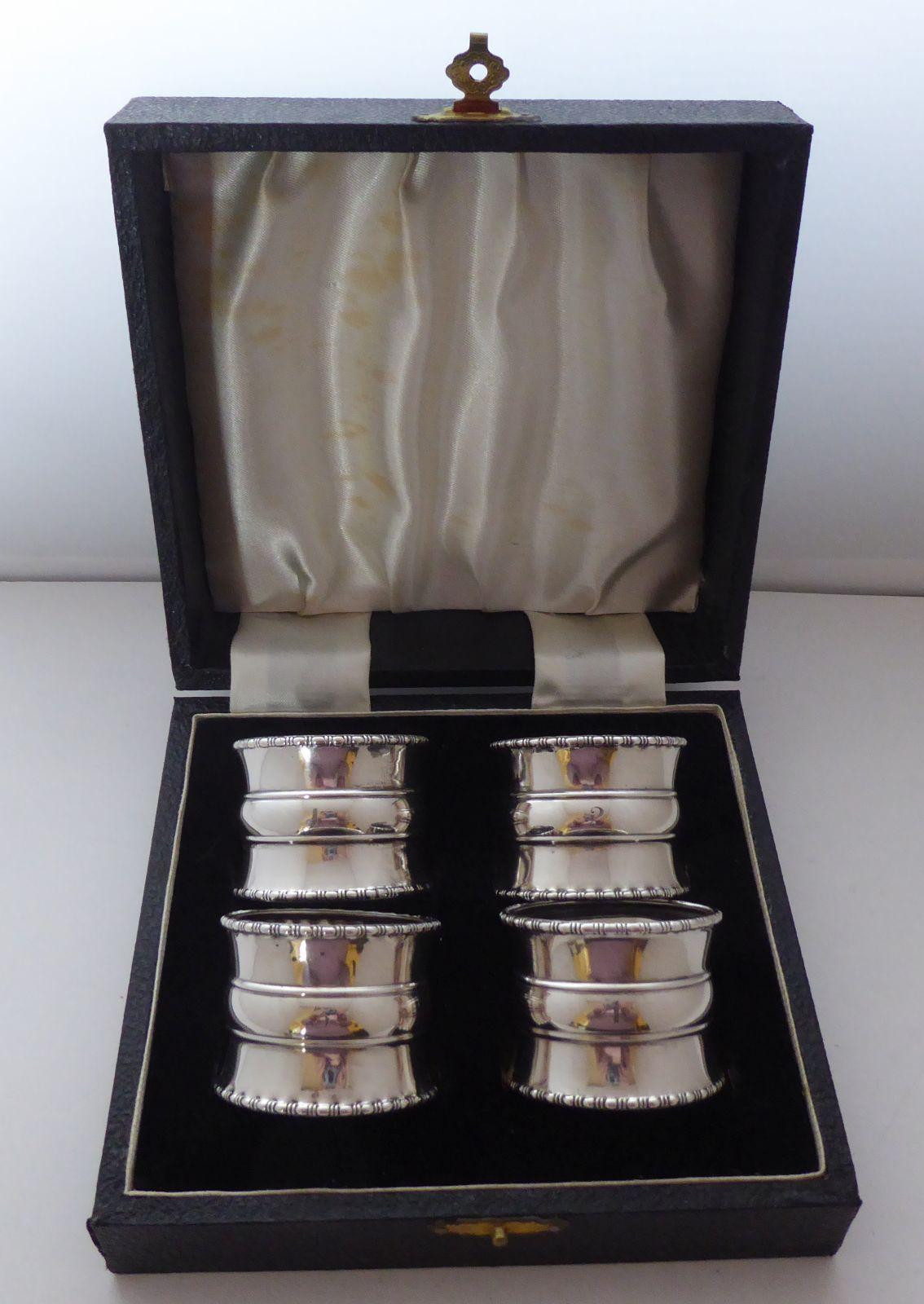 Boxed Set 4 Birmingham 1923 Hallmarked Solid Silver Napkin Rings Serviette Ring