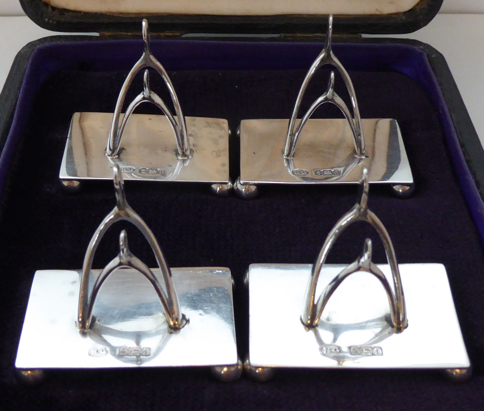 Boxed Set 4 Hallmarked Solid Silver Menu Holders Name Place Wishbone Shape 1903