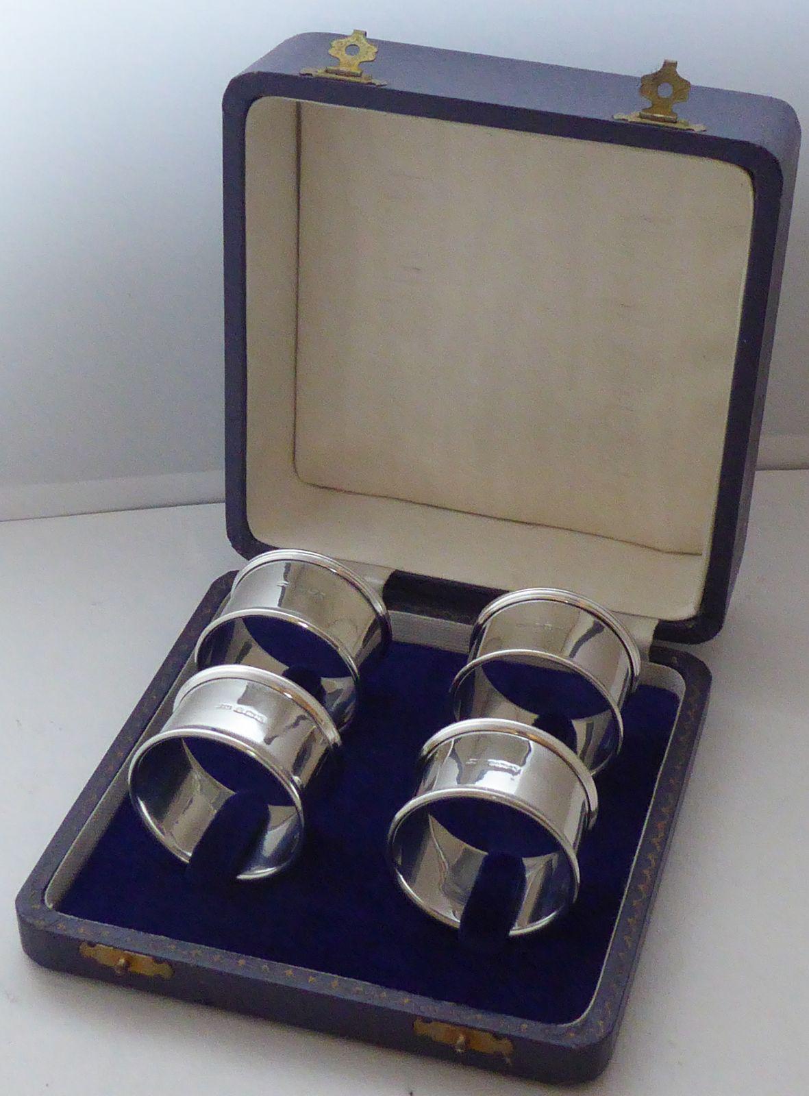 Boxed Set 4 Hallmarked Solid Silver Napkin Rings Serviette Charles Perry & Co