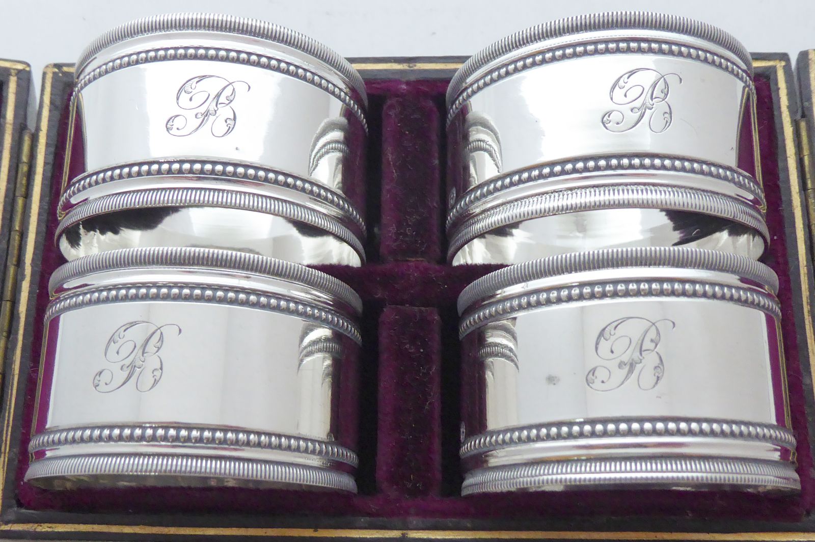 Boxed Set 4 Hallmarked Solid Silver Napkin Rings Serviette Ring Birmingham 1892