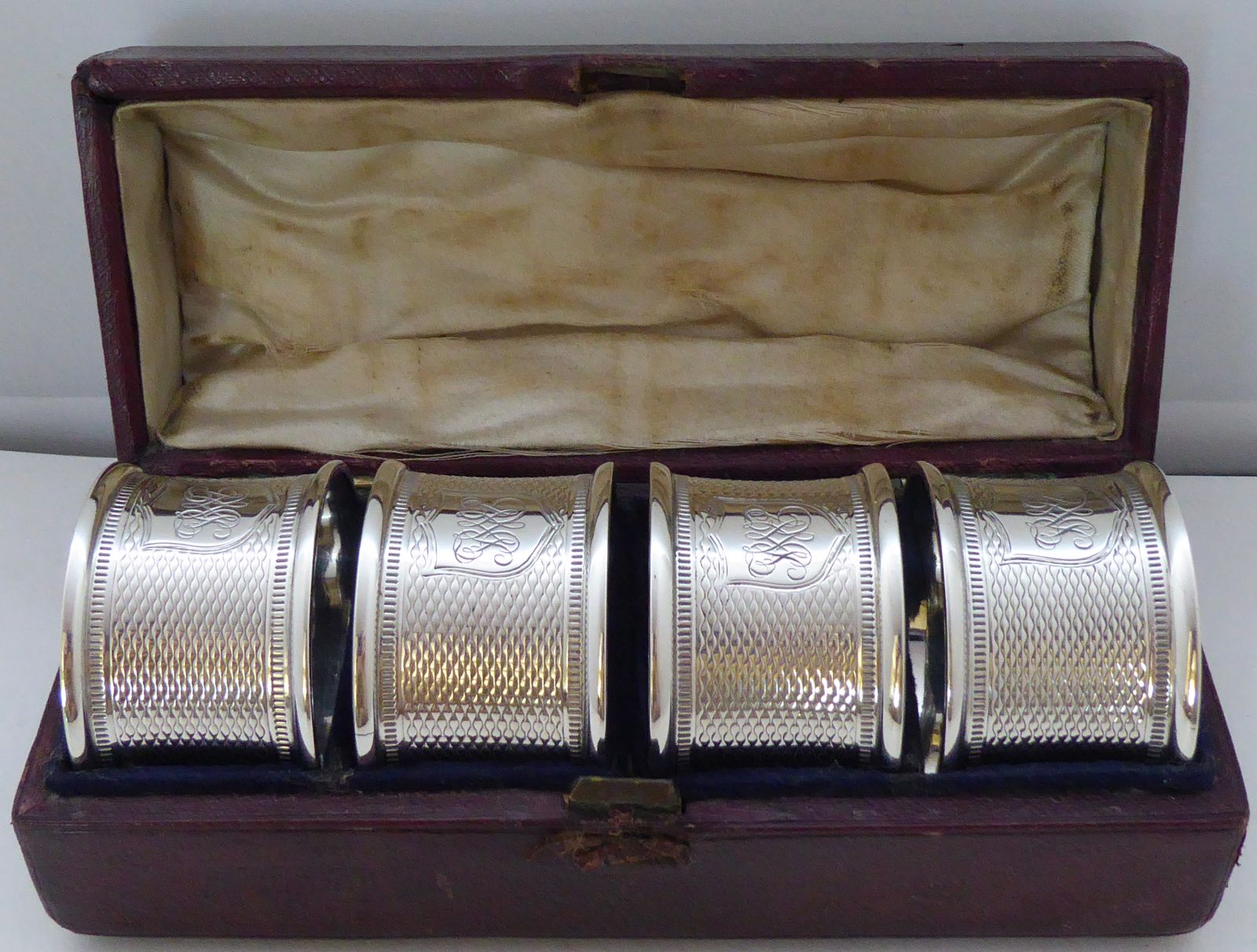 Boxed Set 4 Hallmarked Solid Silver Napkin Rings Serviette Ring London 1864