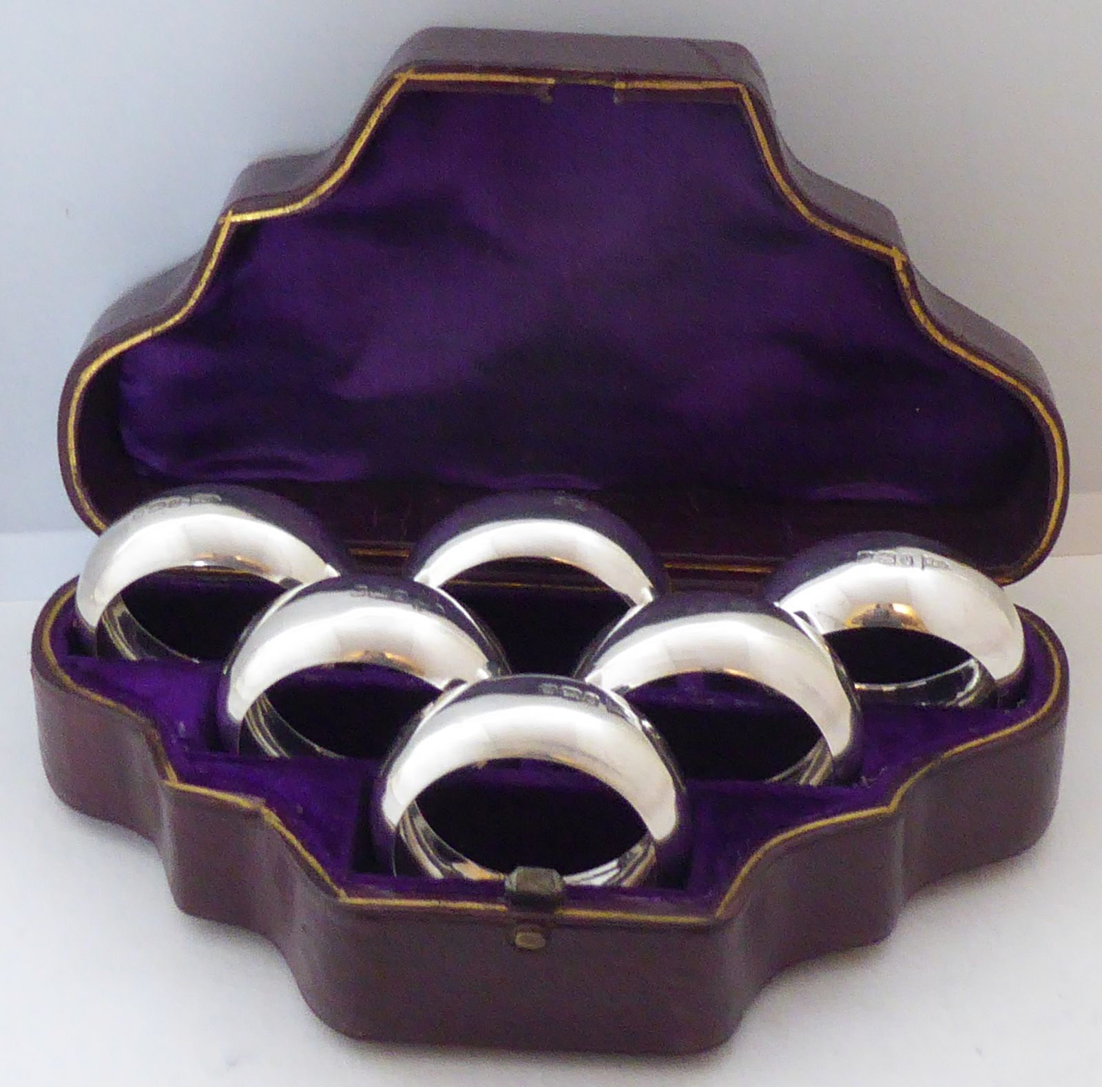 Boxed Set 6 1899 Hallmarked Solid Silver Napkin Rings Serviette Ring Walker & Hall