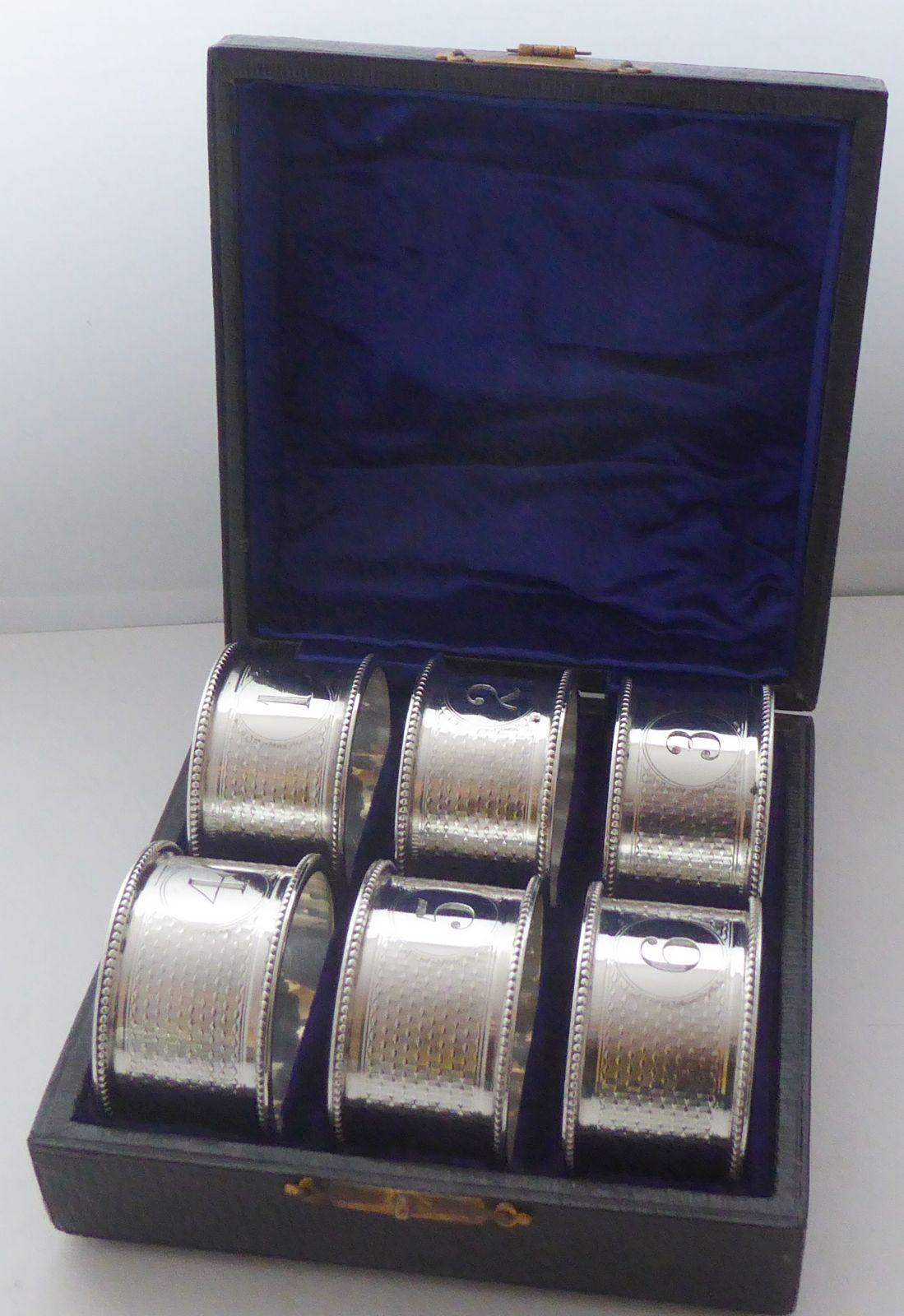 Boxed Set 6 1907 Hallmarked Solid Silver Napkin Rings Serviette Ring