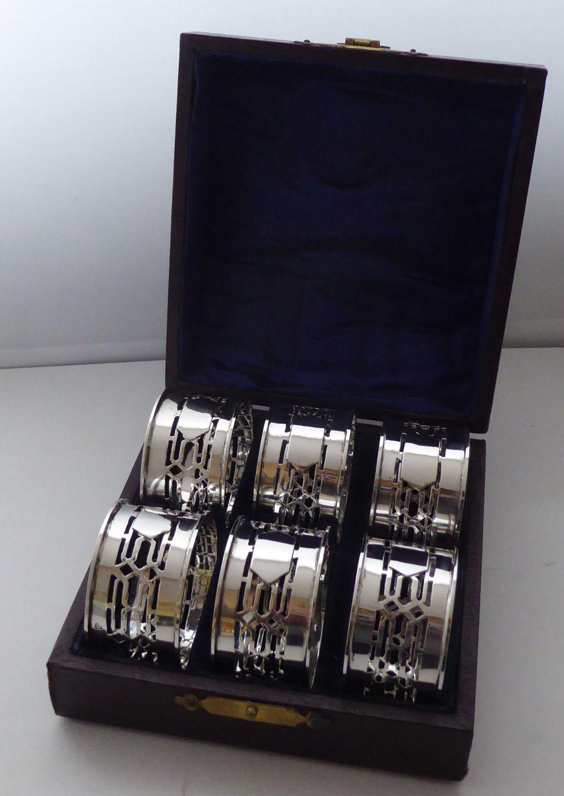 Boxed Set 6 1919 Hallmarked Solid Silver Napkin Rings Serviette Ring