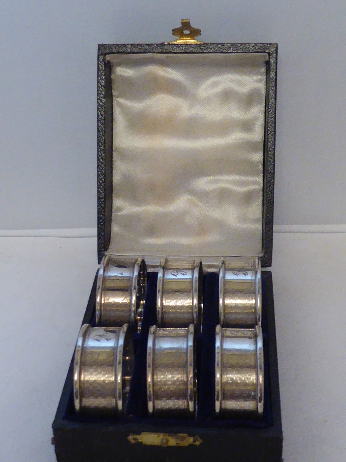Boxed Set 6 1934 Art Deco Hallmarked Solid Silver Napkin Rings Serviette Ring