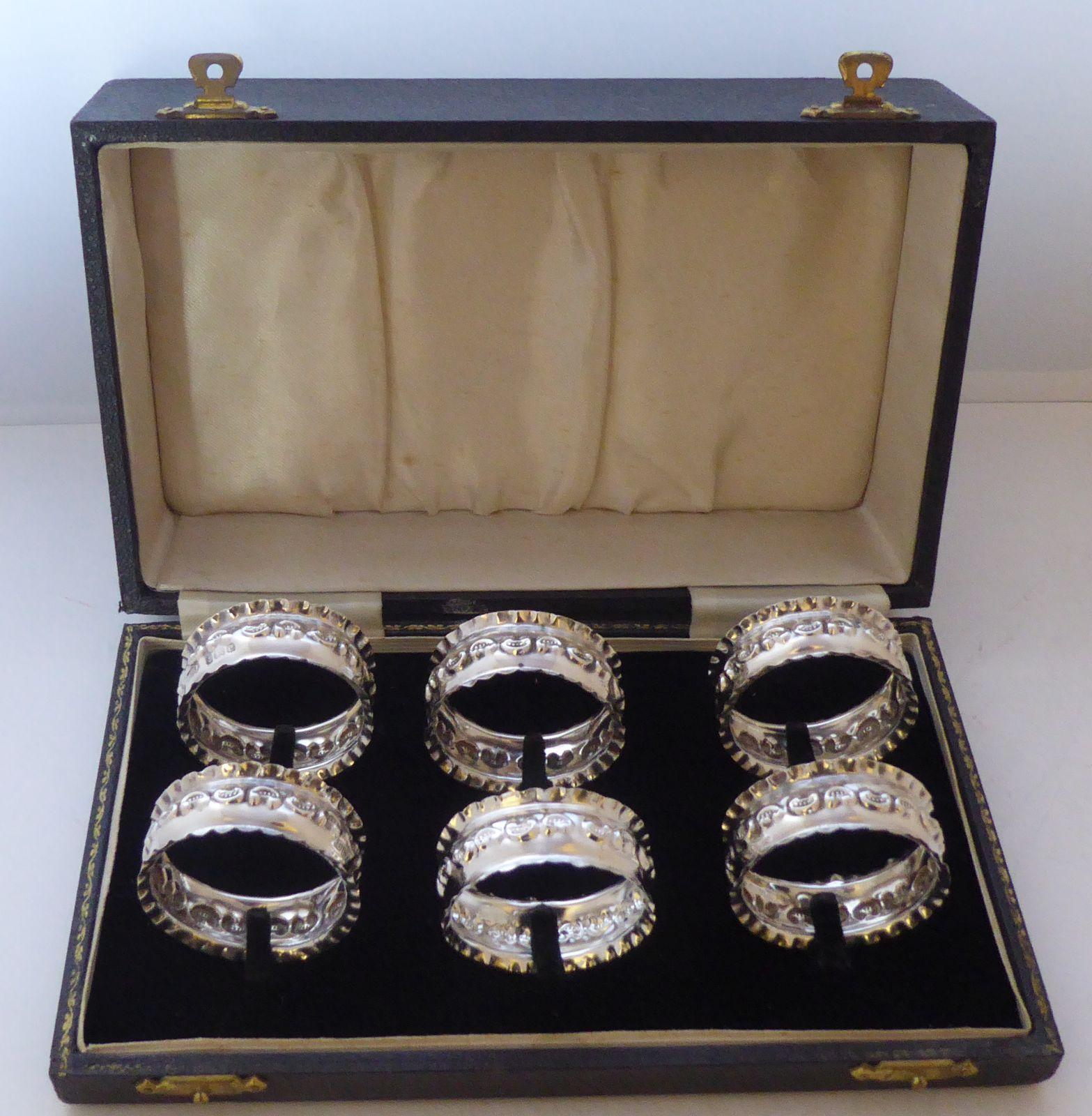 Boxed Set 6 Edwardian 1904 Hallmarked Solid Silver Napkin Rings Serviette Ring