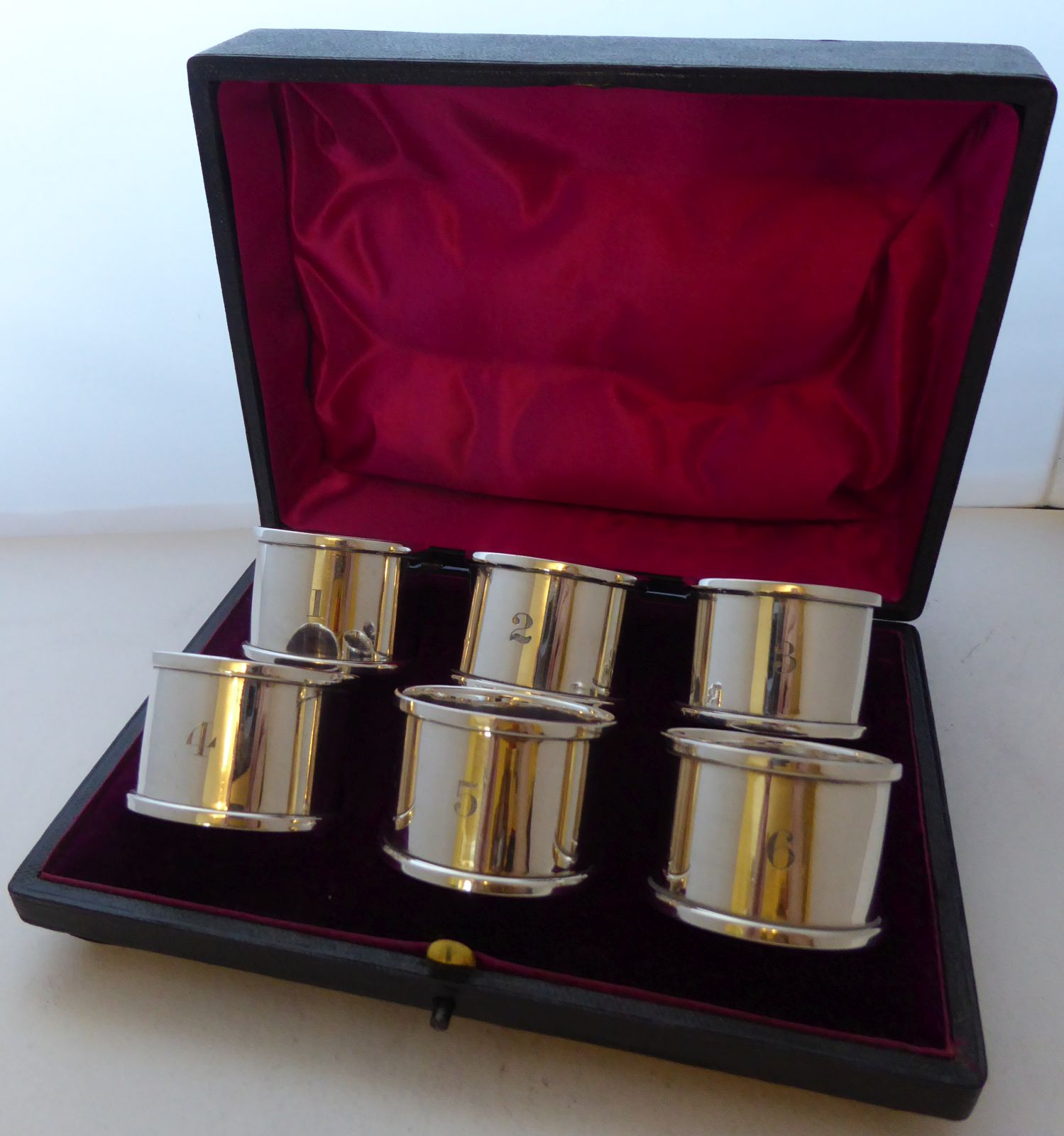 Boxed Set 6 Hallmarked Solid 1927 Silver Napkin Rings Serviette Ring Numbered