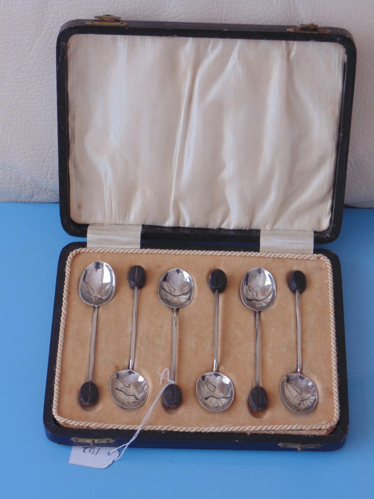 Boxed Set 6 Silver Coffee Bean Spoons Birmingham 1922