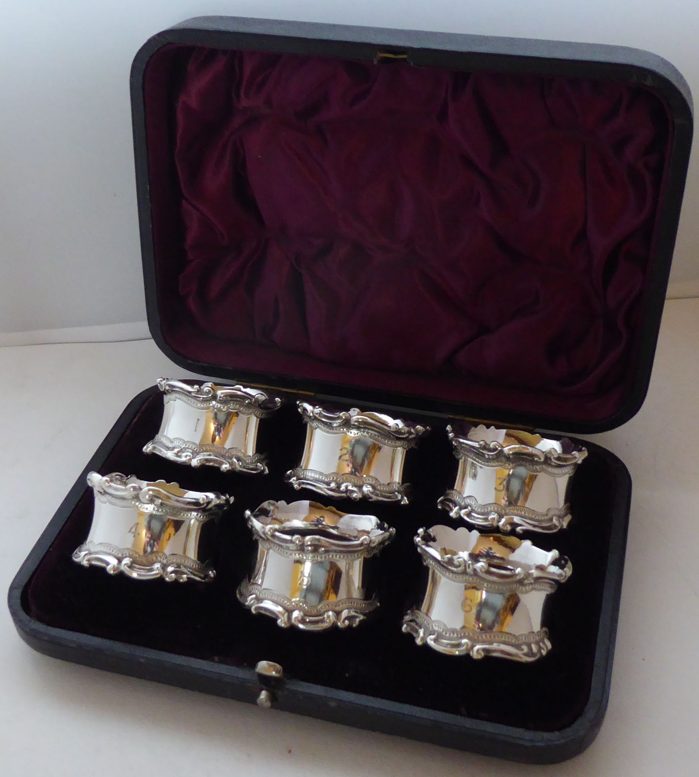 Boxed Set 6 Victorian Hallmarked Solid Silver Napkin Rings Serviette Ring 1896
