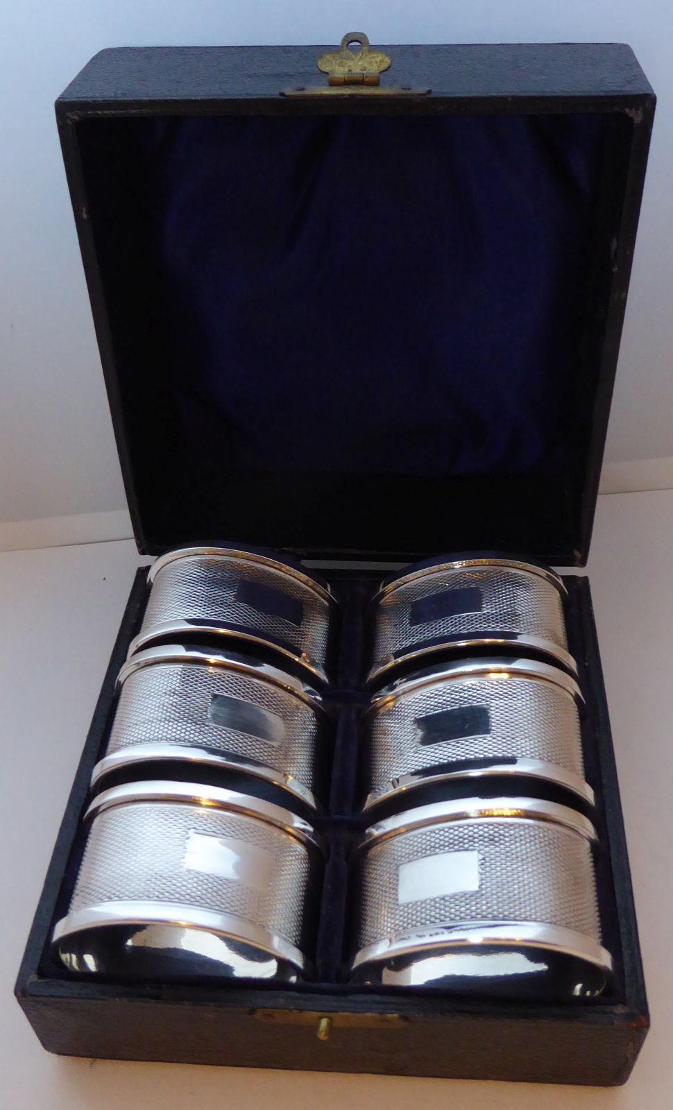 Boxed Set of 6 1935 Hallmarked Solid Silver Napkin Rings / Serviette Rings 83G