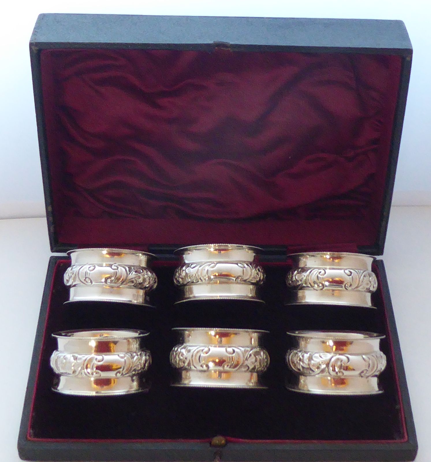 Boxed Set of 6 Edwardian Hallmarked Solid Silver Napkin Rings Serviette Ring