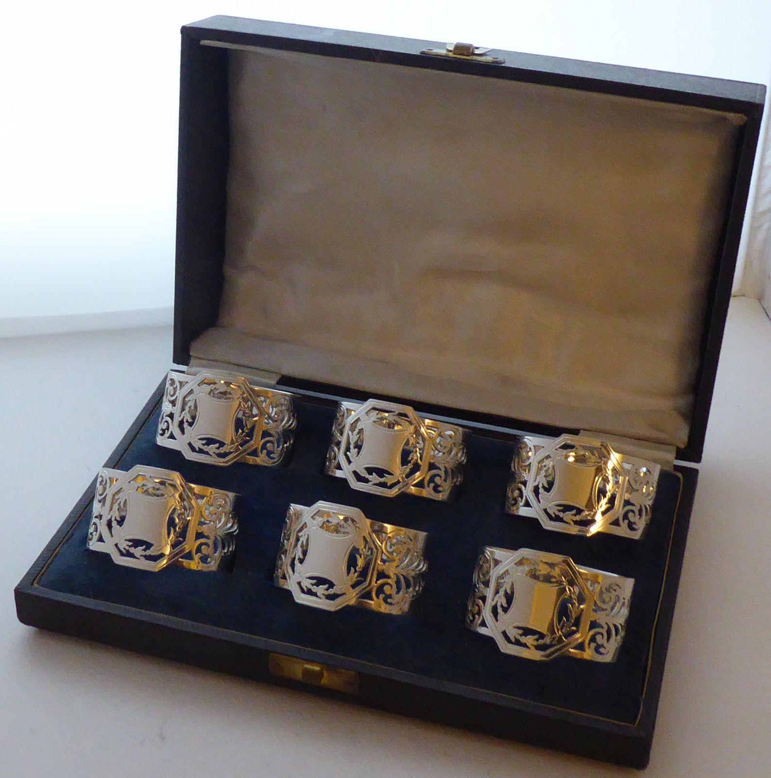 Boxed Set of 6 Sterling Solid Silver Napkin Rings Serviette Ring 173g c.1940