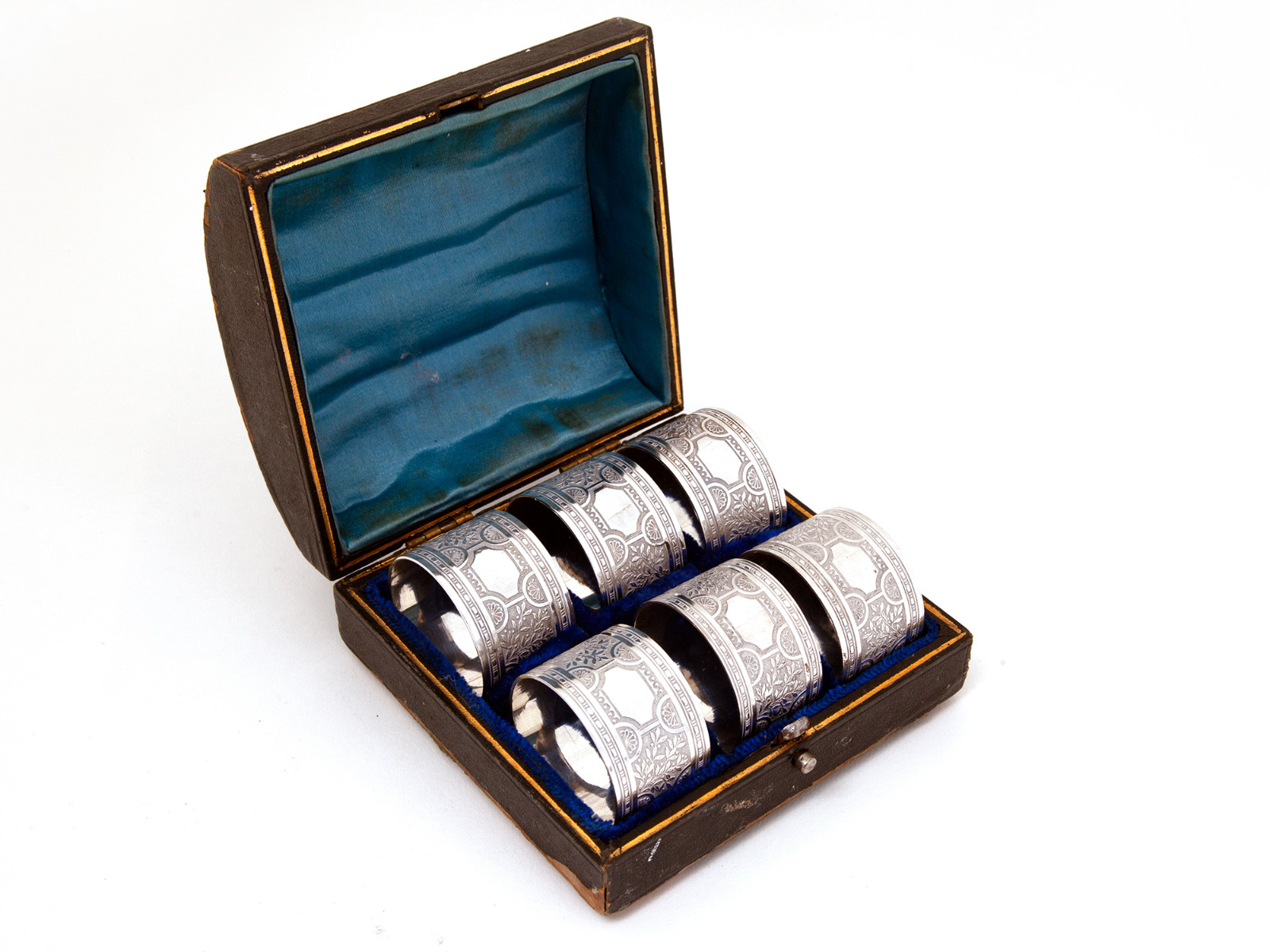 Boxed Set of Six Late Victorian English Silver Plated Napkin Rings (1 of 1)