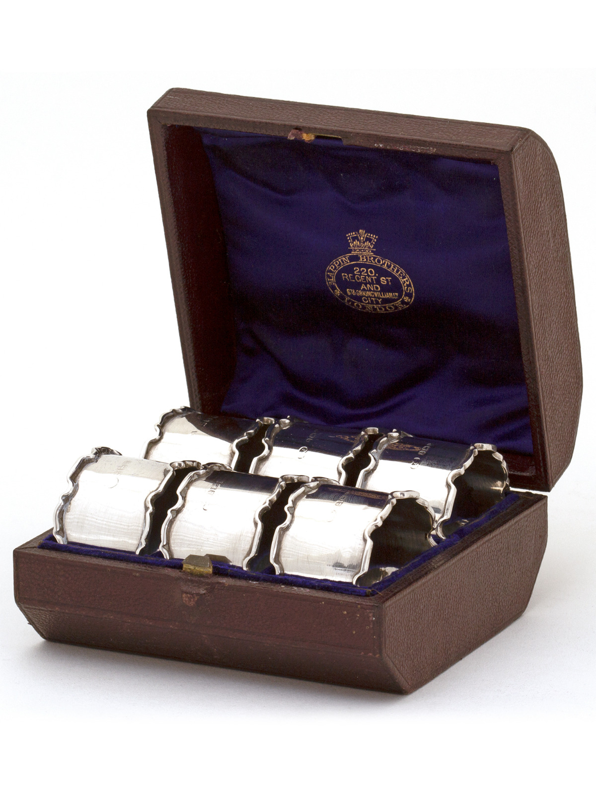 Boxed Set of Six Silver Napkin Rings with Plain Bodies & Chippendale Style Borders
