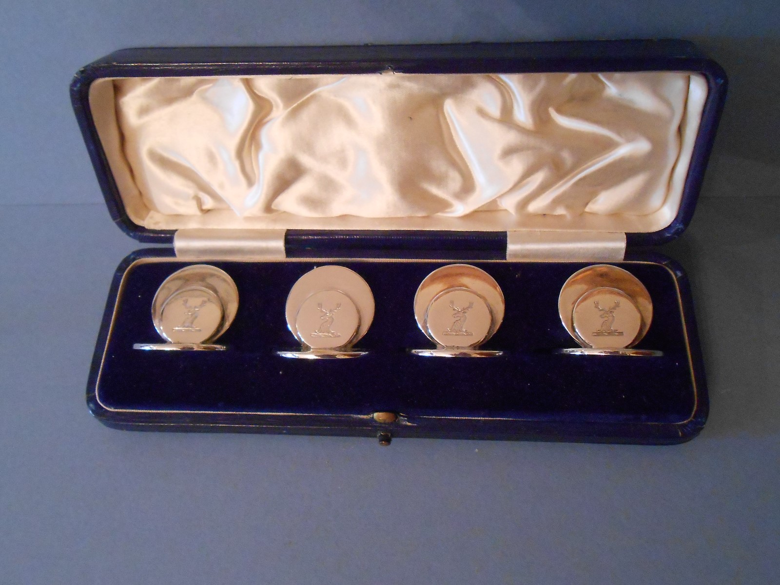 Boxed Set of solid Silver Stag Menu Holders 1909