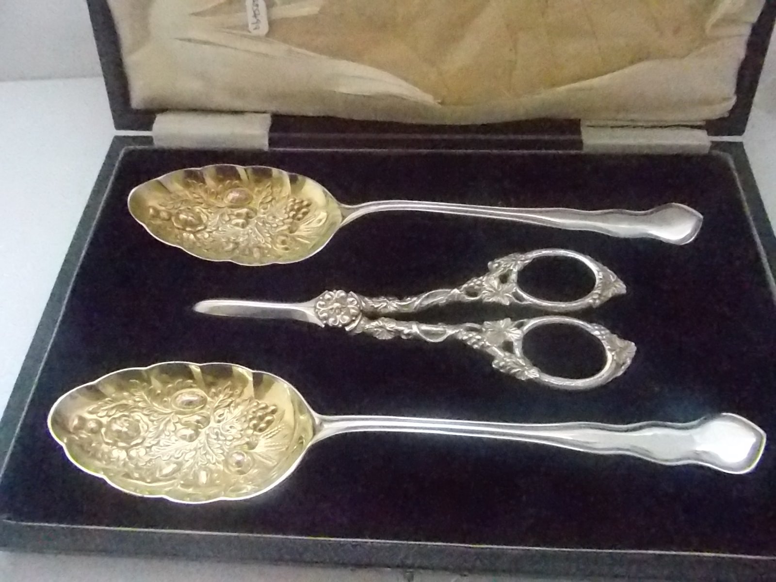 Boxed Silver Plated Berry Spoons & Grape Scissors