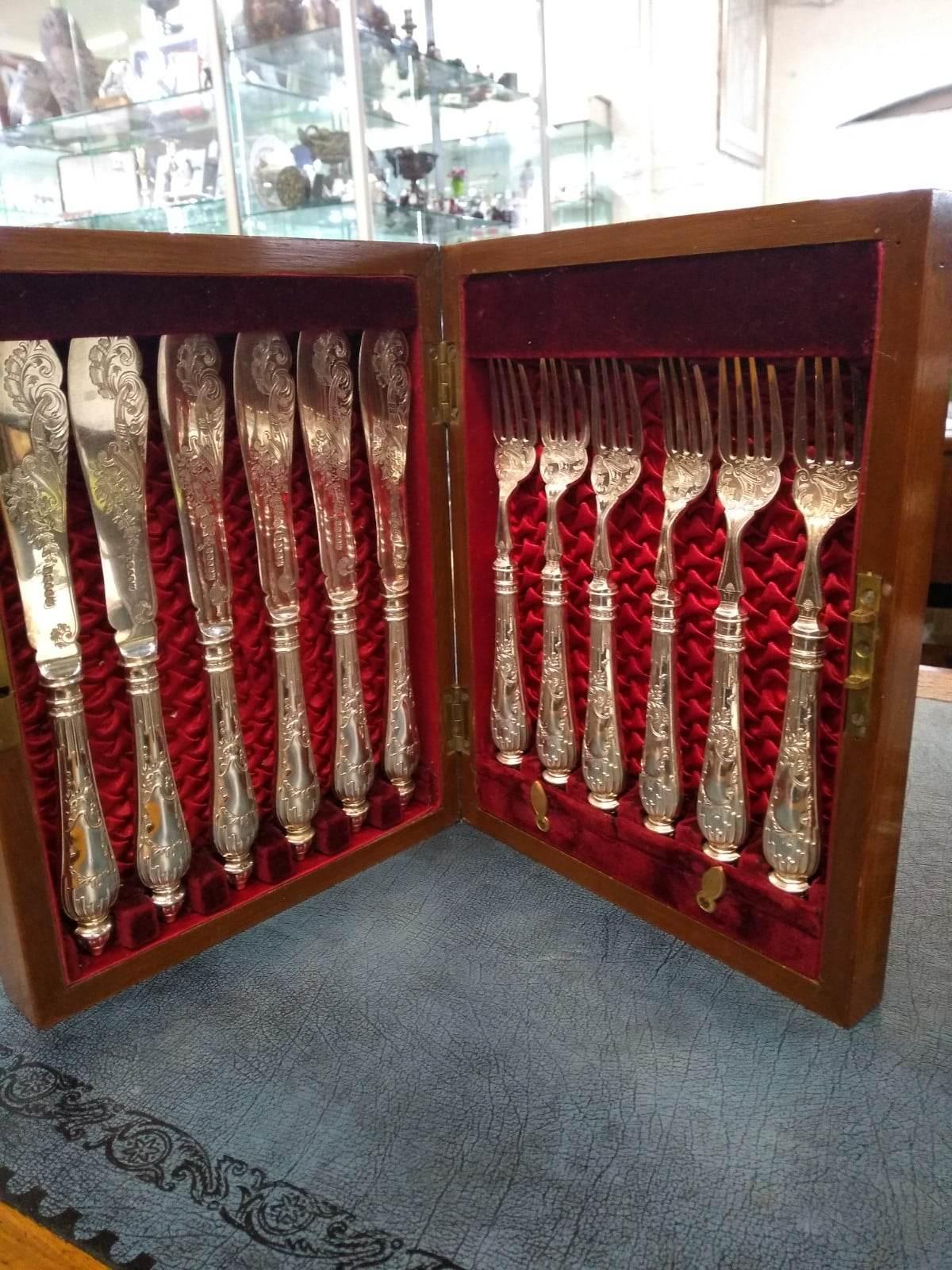 Boxed Victorian Silver Plate Fish Knives & Forks