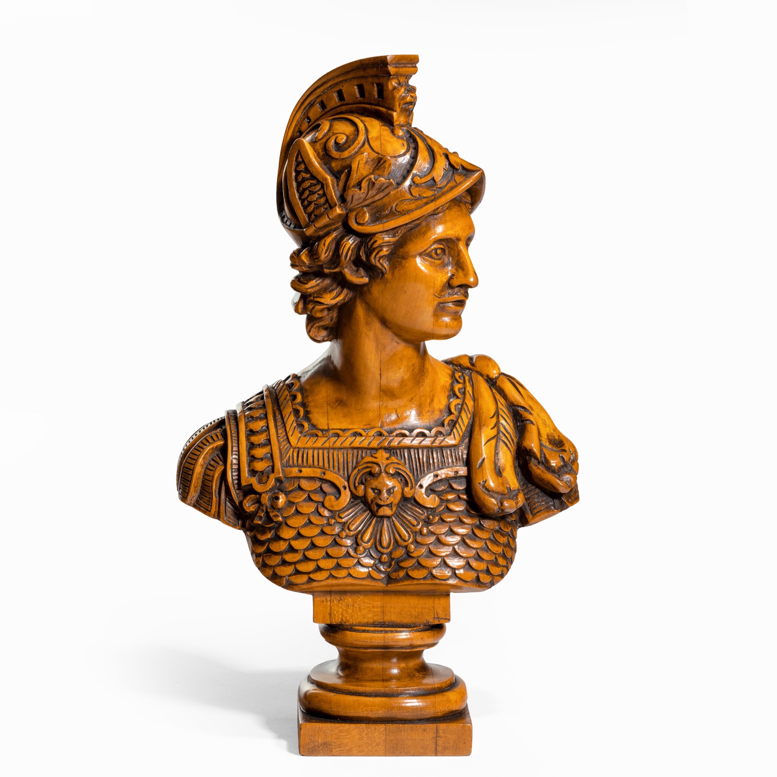 Boxwood Bust of a Greek Warrior, Probably Achilles, by J A De Groot