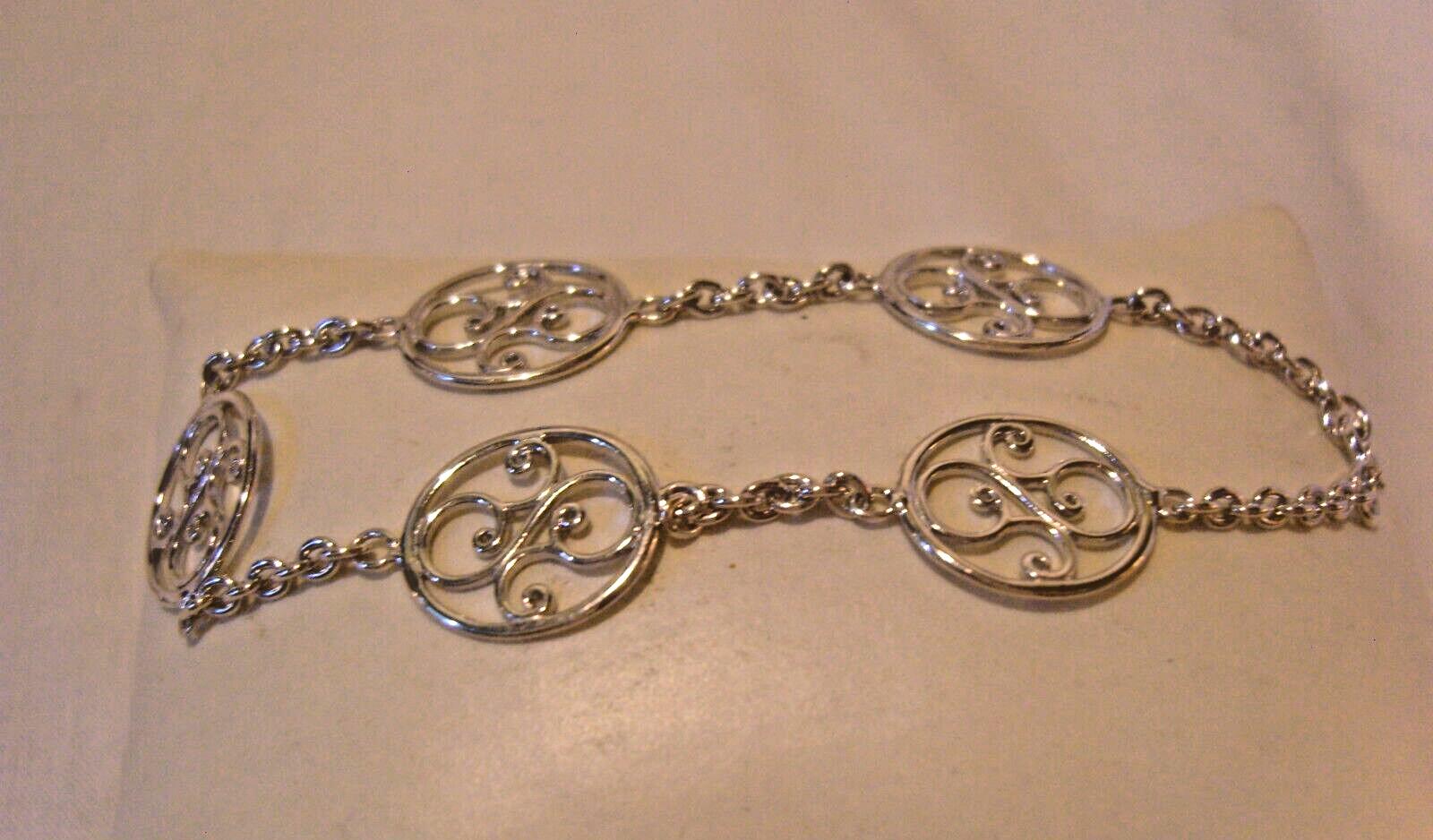 Bracelet 1970s Silver 925 Vintage Art Nouveau Style Fancy Swirl Links 7 1/2"L