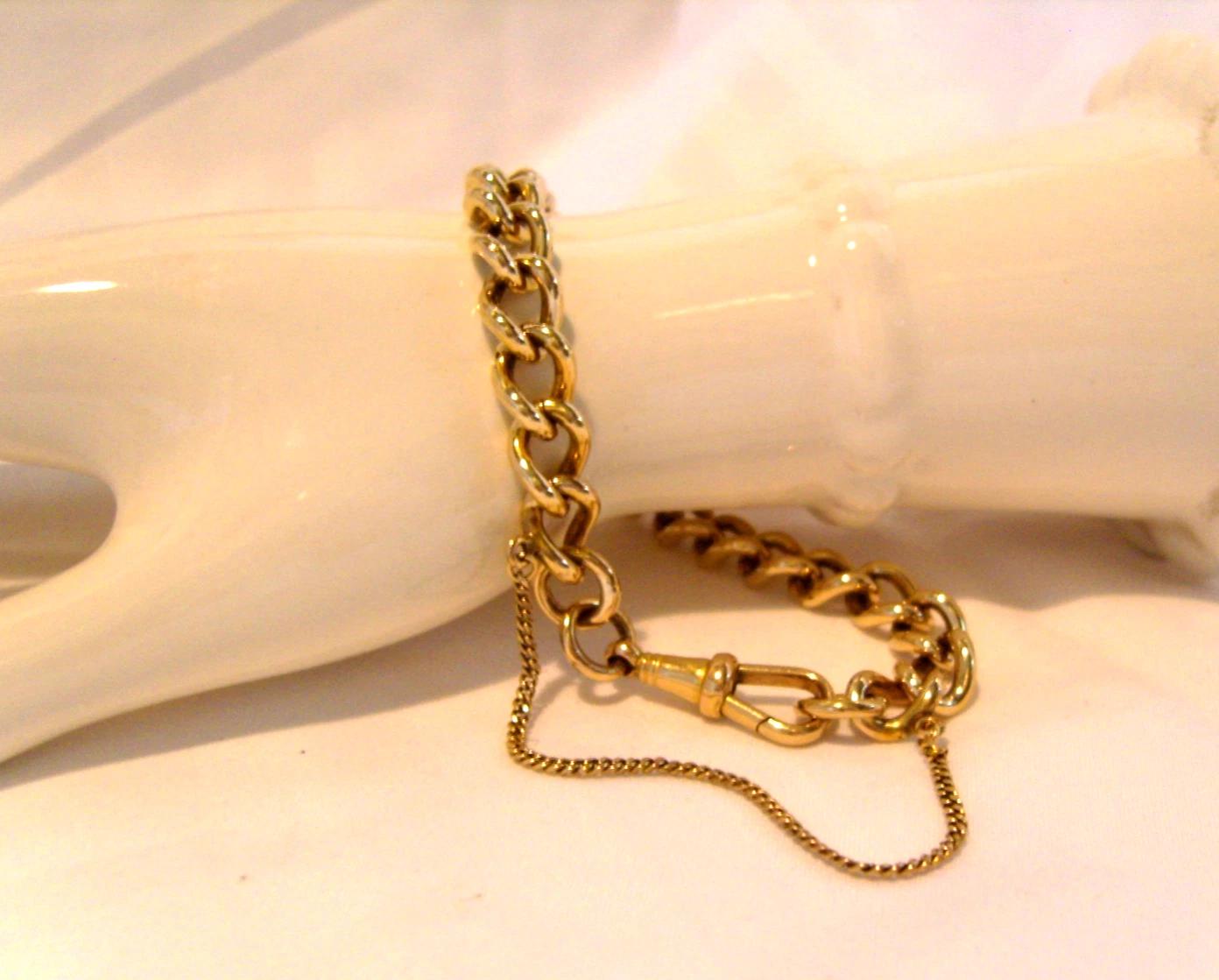 Victorian Ladies fabulous 9ct rose rolled gold (stamped, professionally tested, has a lovely soft pink 'blush' and is known in the USA as gold filled) very attractive chunky curb link bracelet with large feature dog clip.