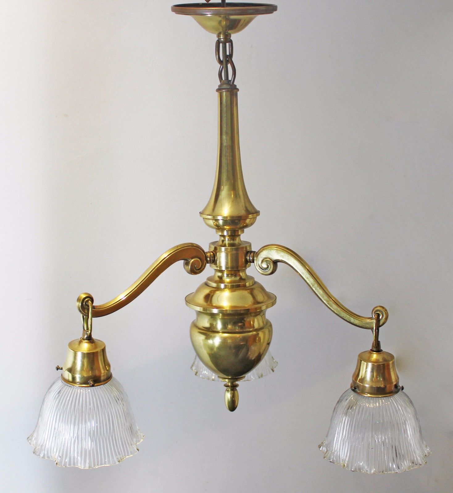 Brass 3 branch Chandelier - Antique Edwardian.