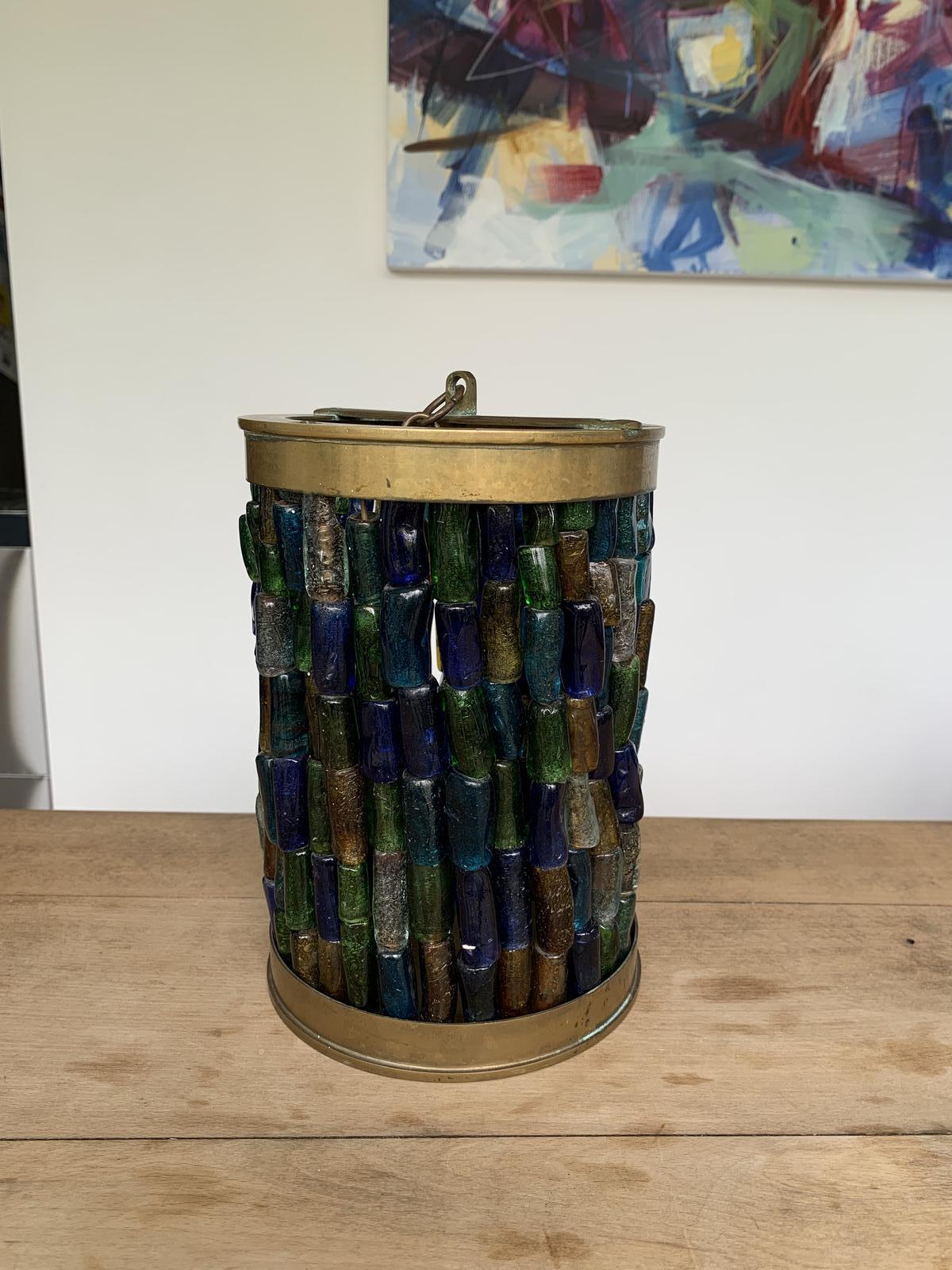 Brass and Multicoloured Stained Glass Hall Lantern / Ceiling Shade