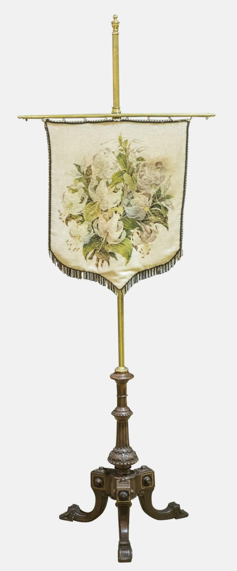 Brass and Walnut Pole Screen