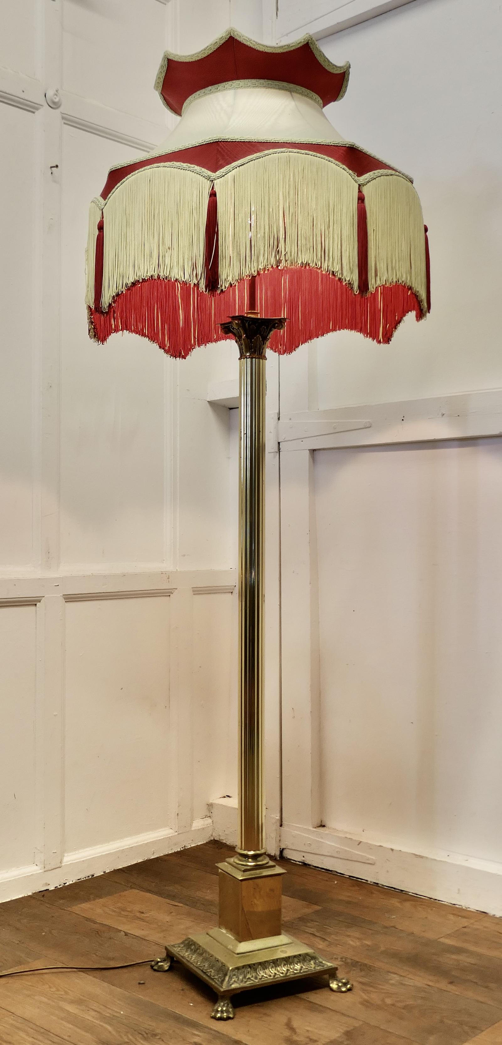 Brass Arts & Crafts Floor Lamp, Hand Made Shade