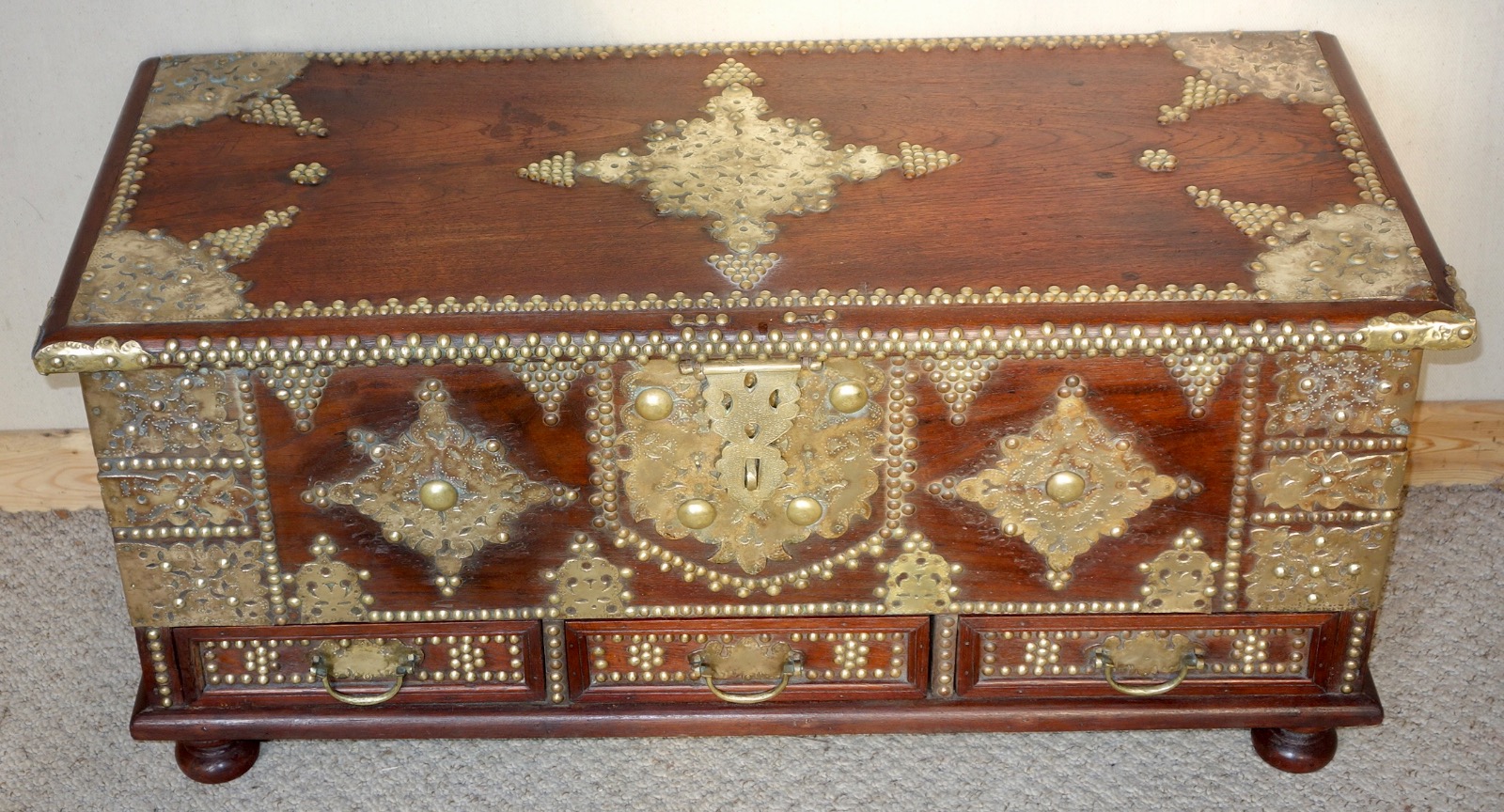 Brass Bound Mahogany Colonial Chest Trunk c.1950 (1 of 1)