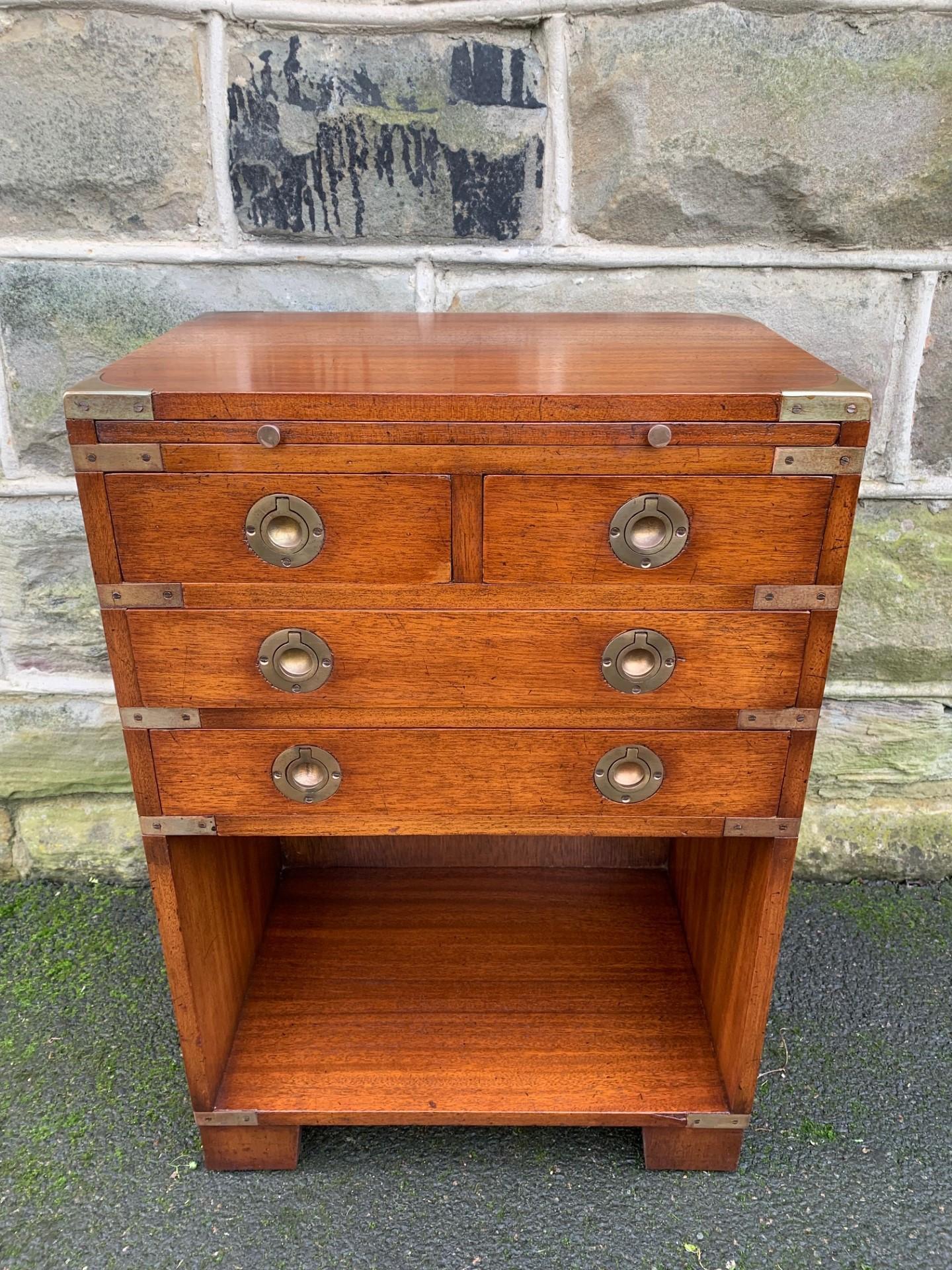 Brass Bound Mahogany Military Campaign Bedside Chest of Drawers