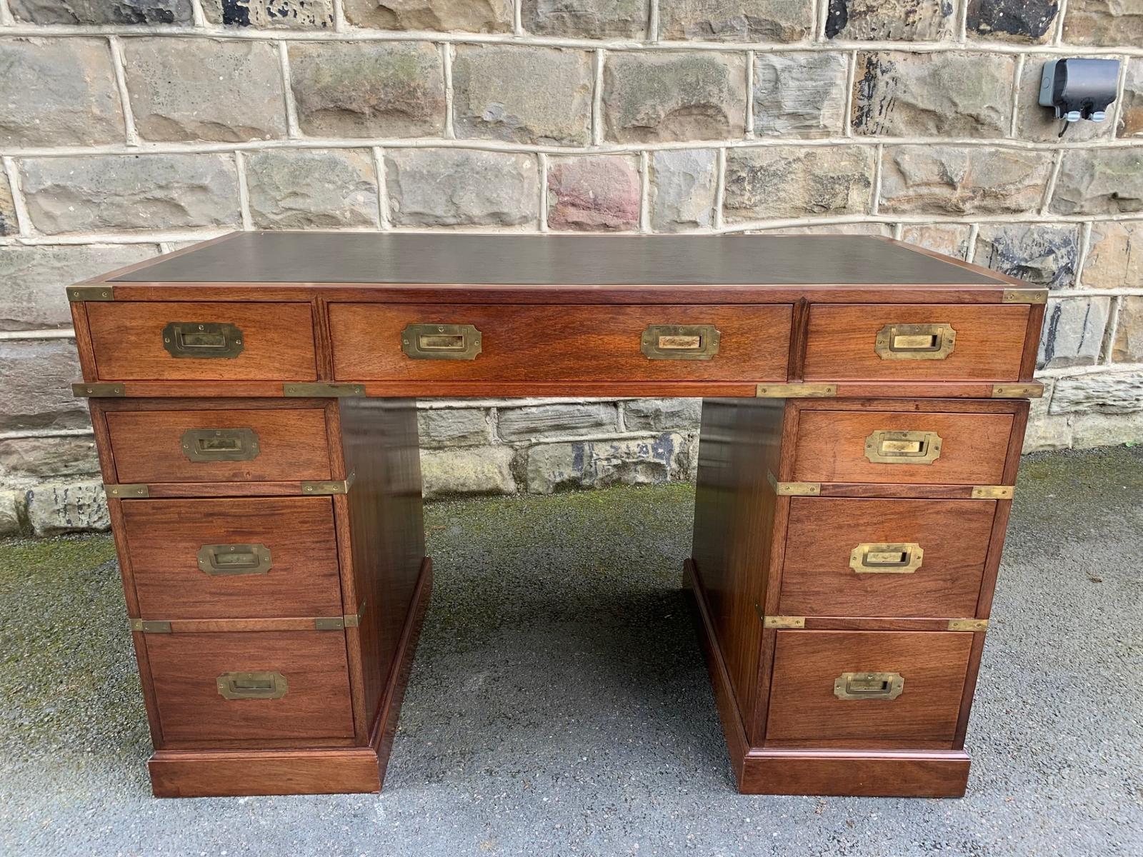 Brass Bound Mahogany Military Campaign Pedestal Desk