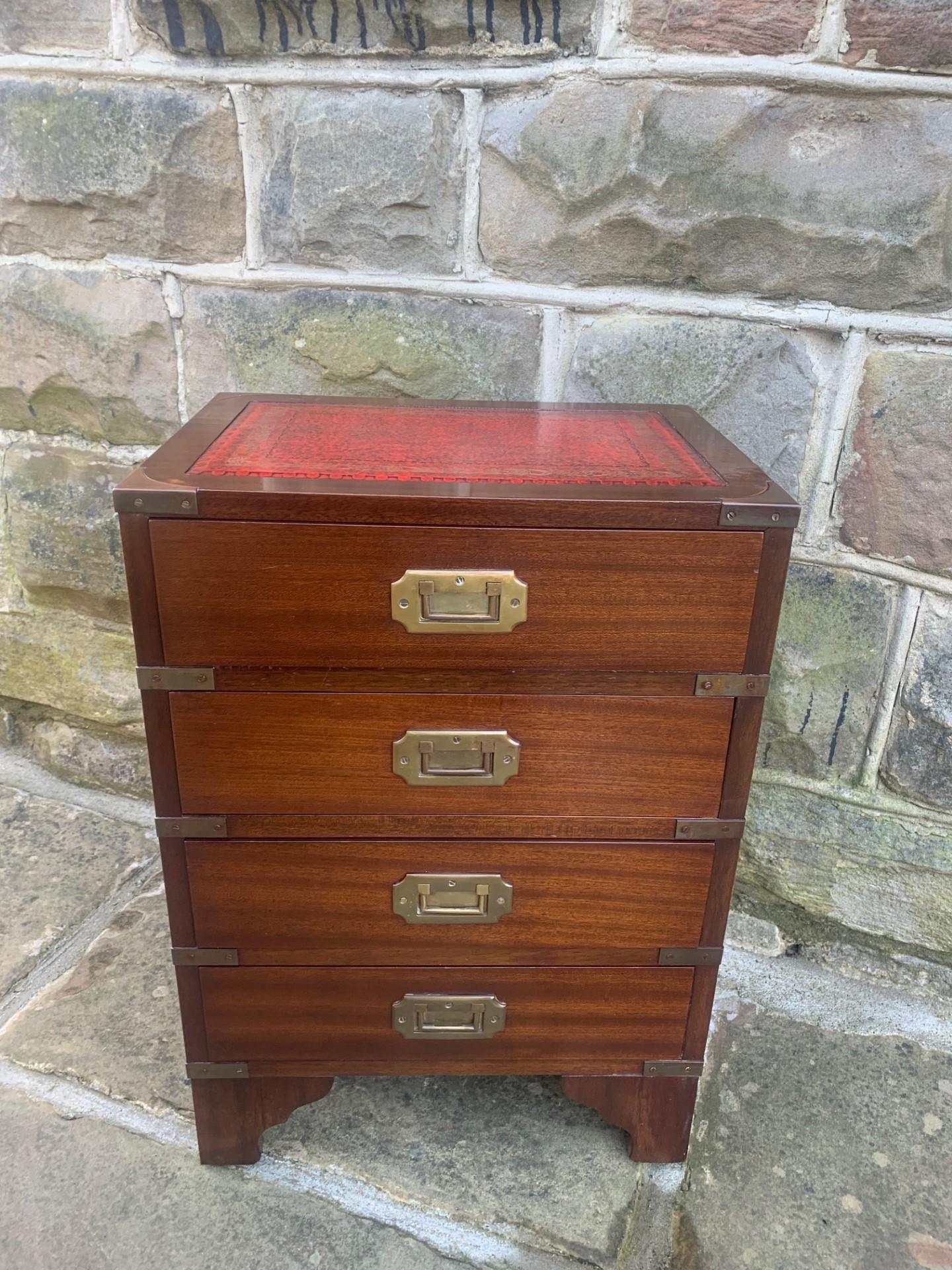 Brass Bound Mahogany Military Campaign Style Bedside Chest Drawers