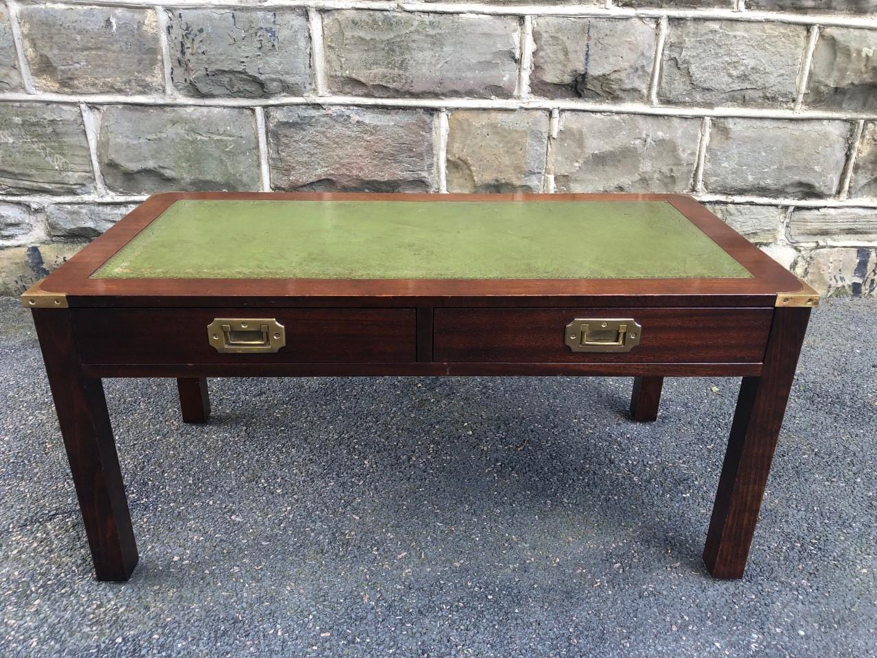 Brass Bound Mahogany Military Style Coffee Table