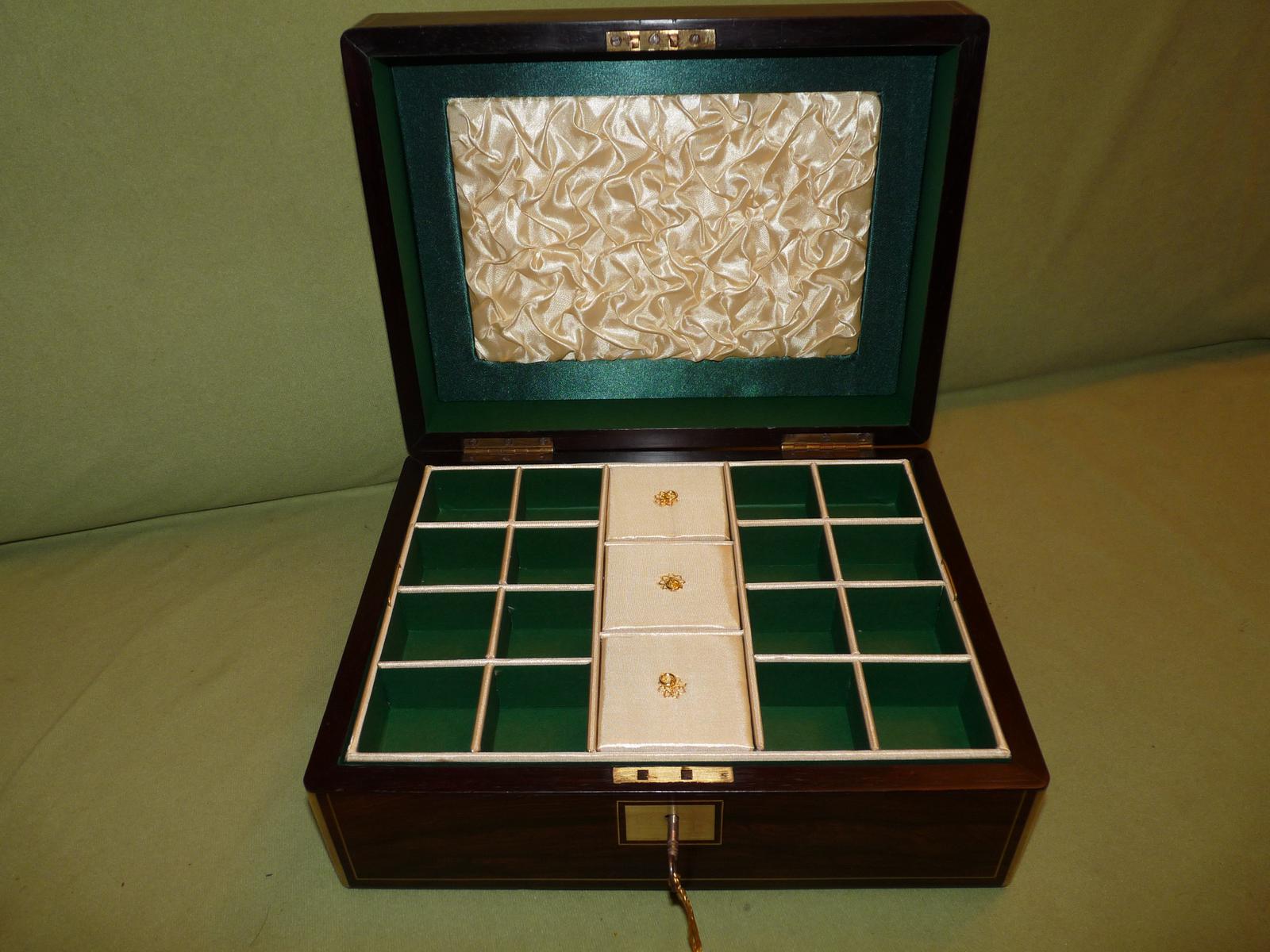 Brass Bound Rosewood Jewellery Box. Plush Interior c.1860