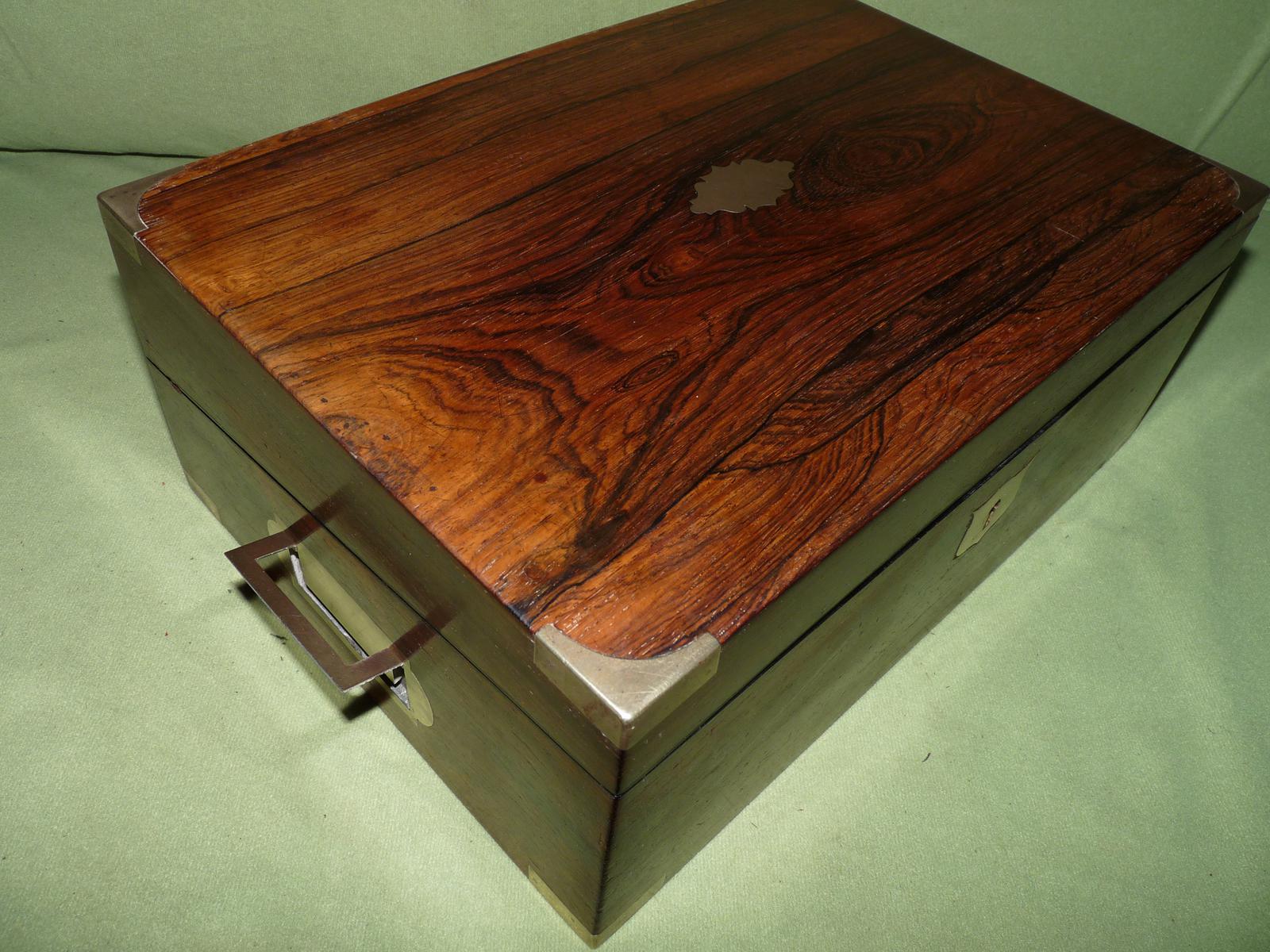 Brass Bound Rosewood Writing Box. Makers Label + More c.1840