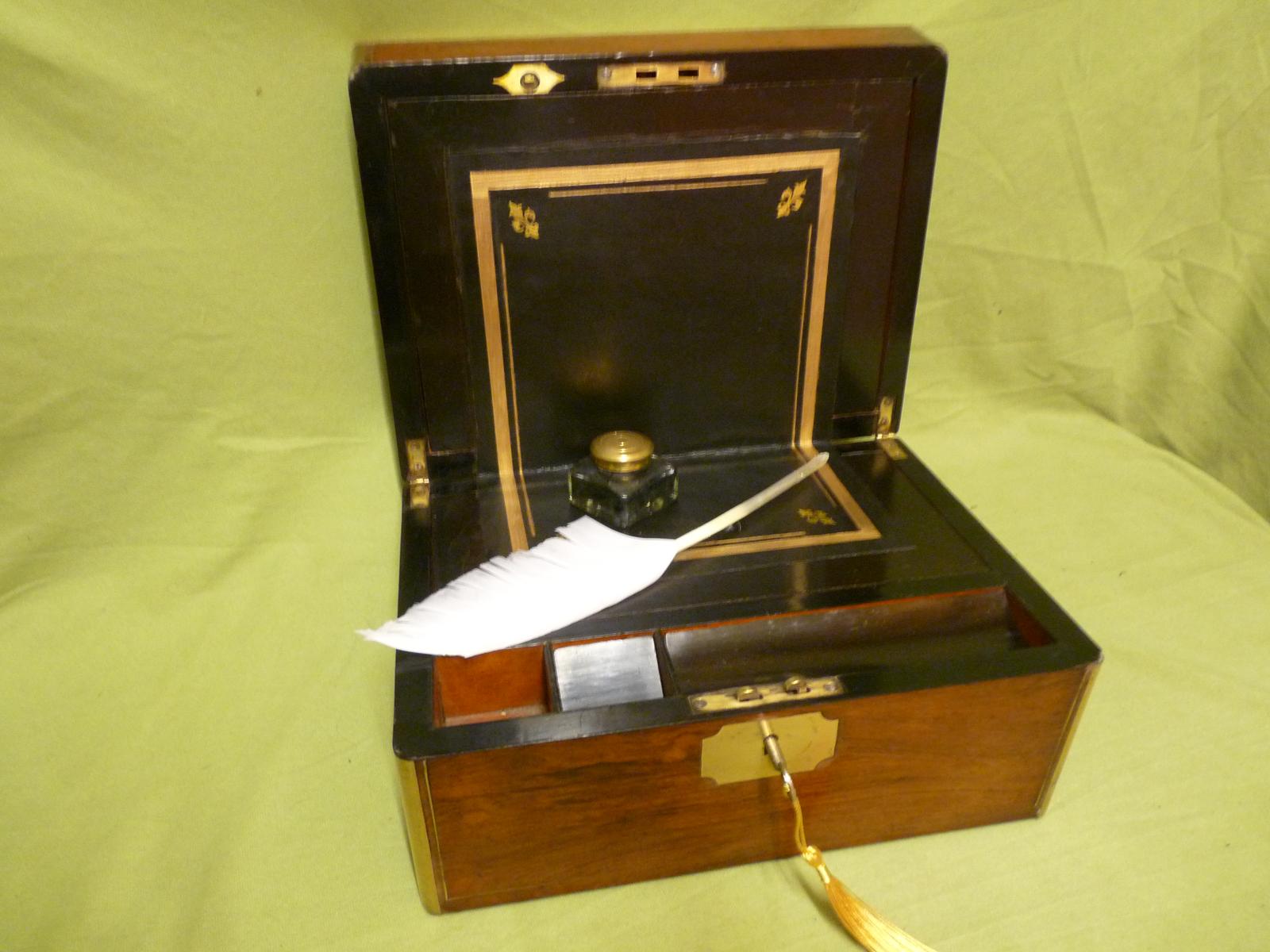 Brass Bound Rosewood Writing Box - Secret Drawers c.1870