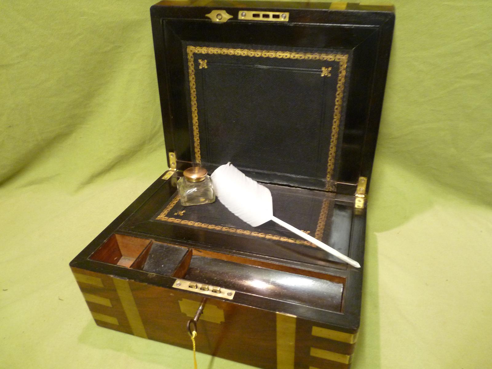 Brass Bound Walnut Writing Box - Secret Drawer - Original Leather c.1850