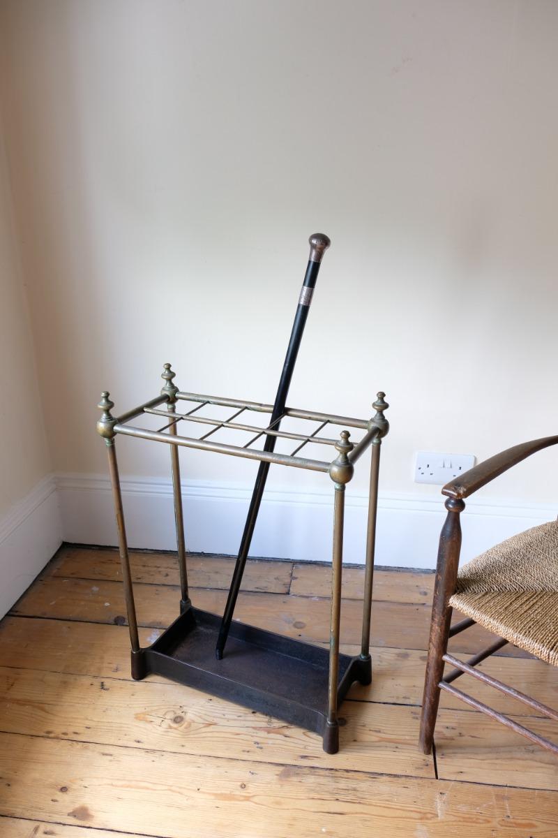 Brass & Cast Iron Stick Stand with Finials 19th Century