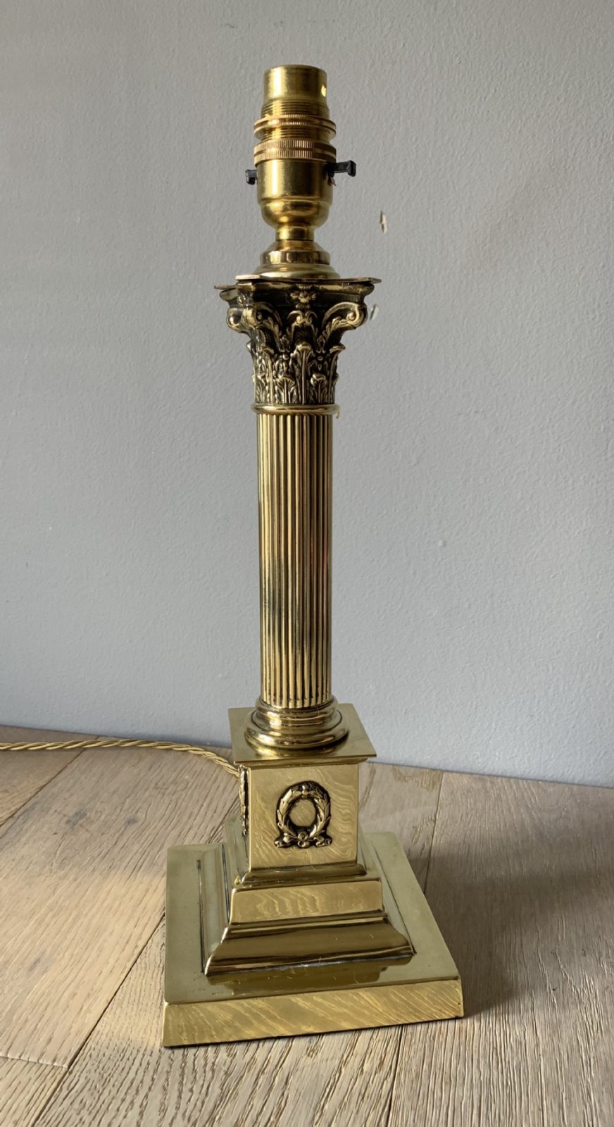 Brass Corinthian Column Table Lamp, Rewired & PAT Tested c.1920