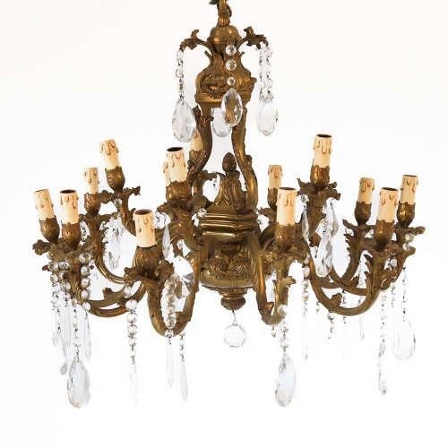 Brass & Crystal Rococo Style Chandelier - Mid Century (1 of 12)