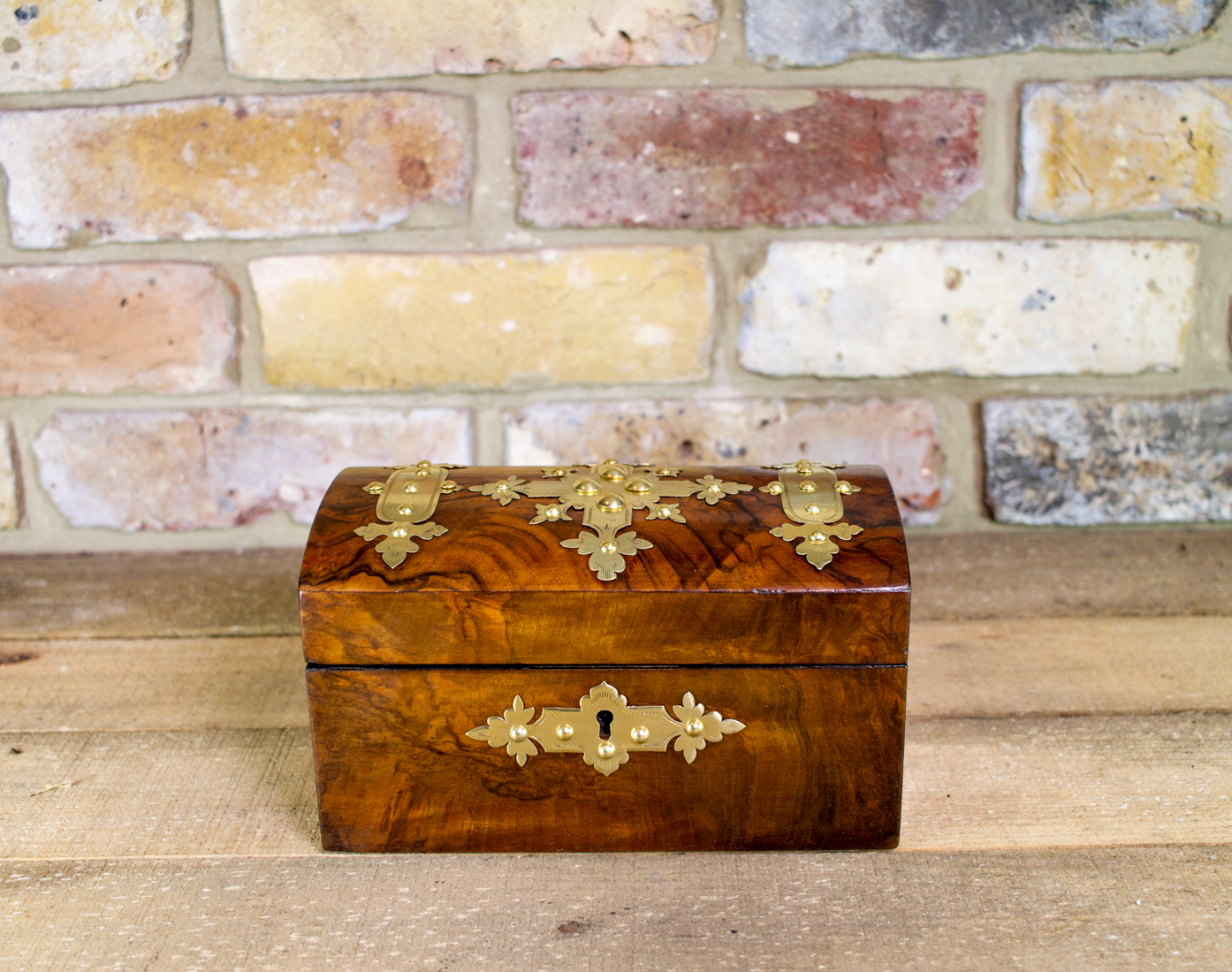 Brass & Figured Walnut Tea Caddy c.1870 (1 of 1)