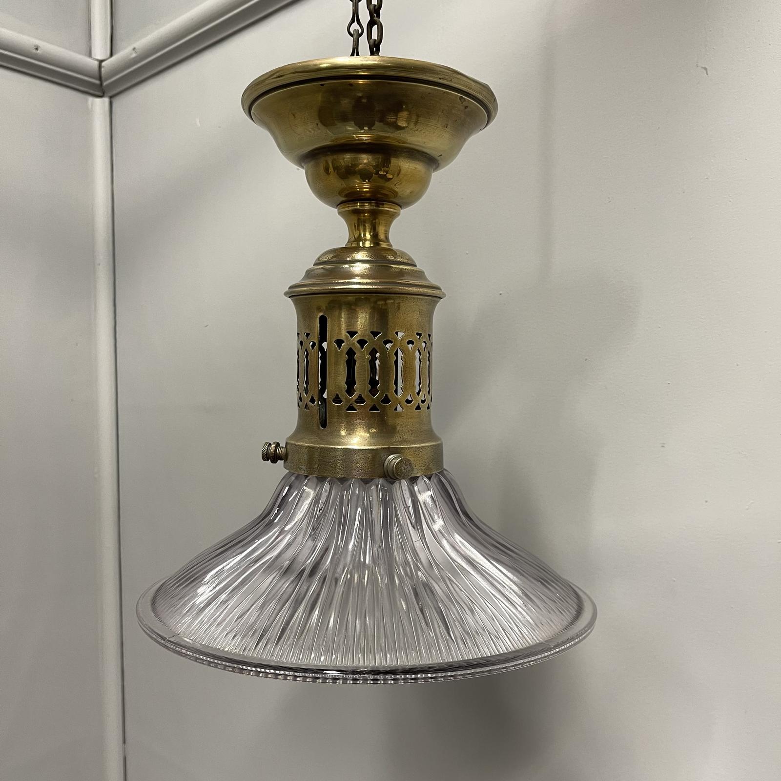 Brass & Glass Holophane Ceiling Light