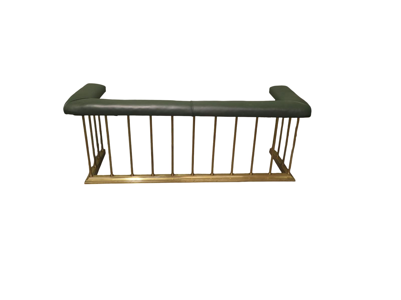 This is a genuine piece of Country House decorative furnishing the fender is in brass with its original green Leather upholstered seat. The fender is very good looking and sturdy, the leather is in used attractive condition.