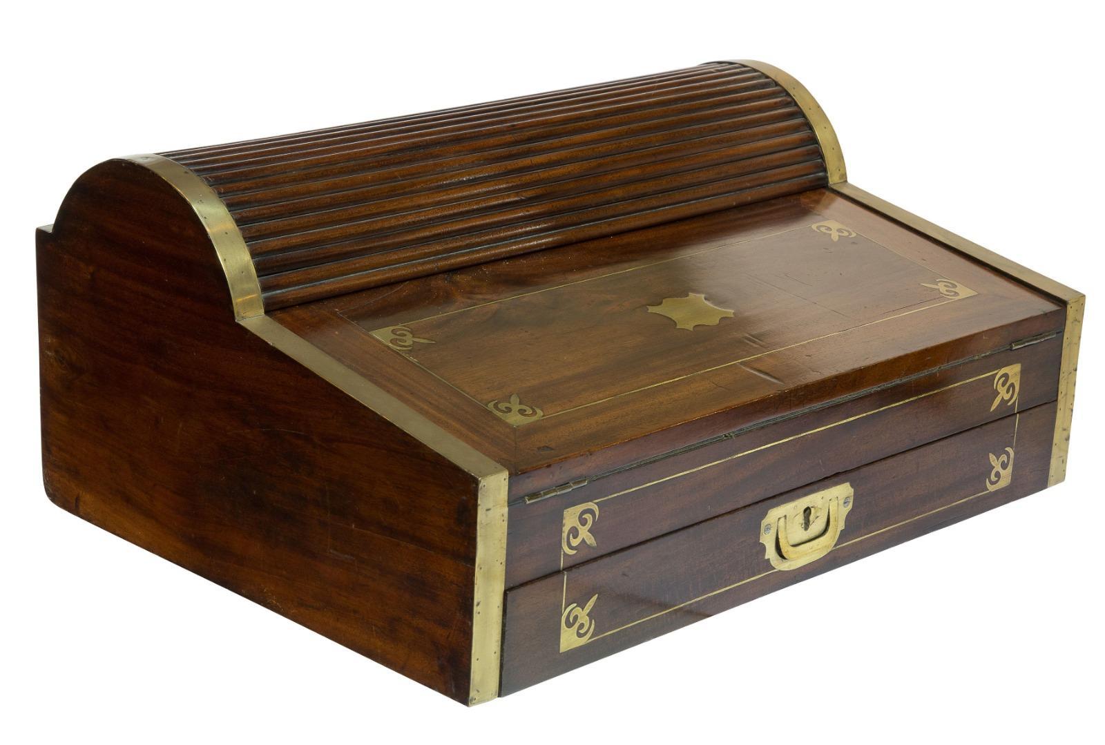 Brass Inlaid Tambour Top Campaign Desk