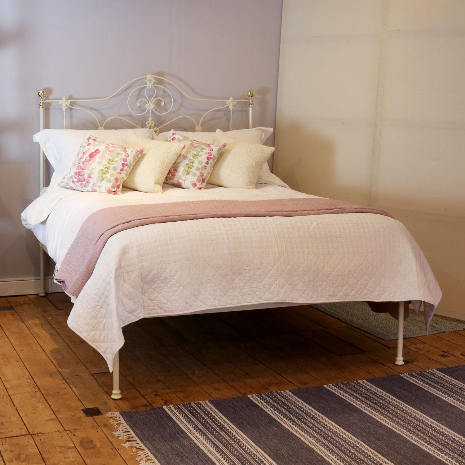 Brass & Iron Antique Platform Bed in Cream