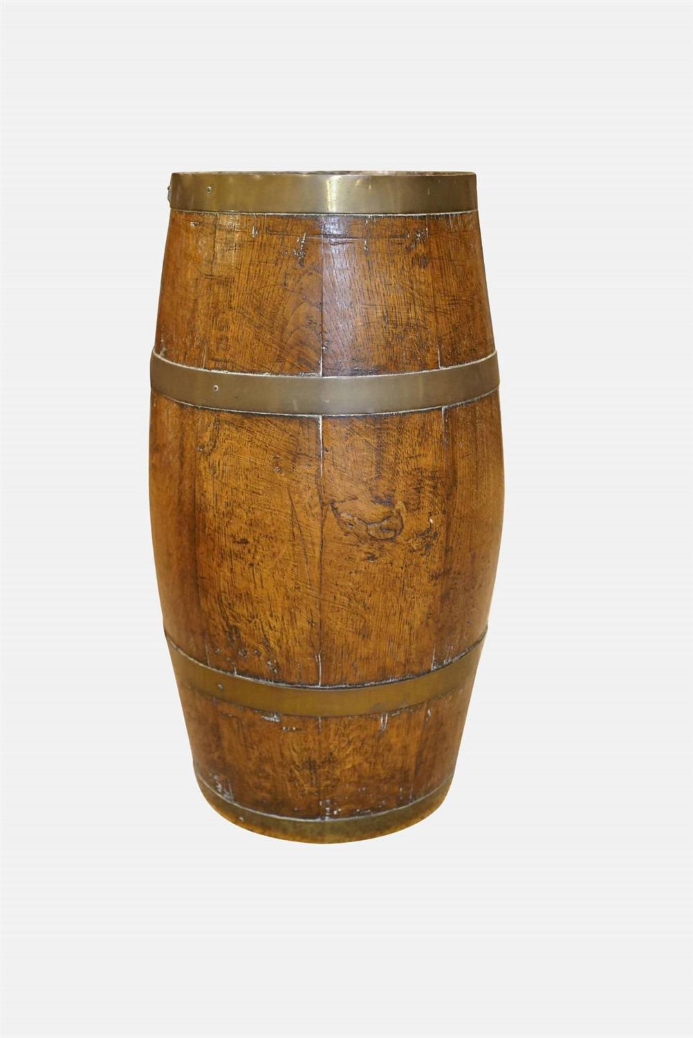 Brass & Oak Coopered Barrel Stick Stand c.1900 (1 of 1)