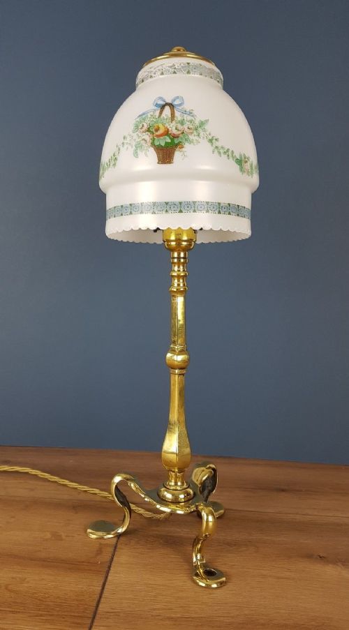 Brass Pullman Lamp with Decorated Flower Basket Shade C.1910