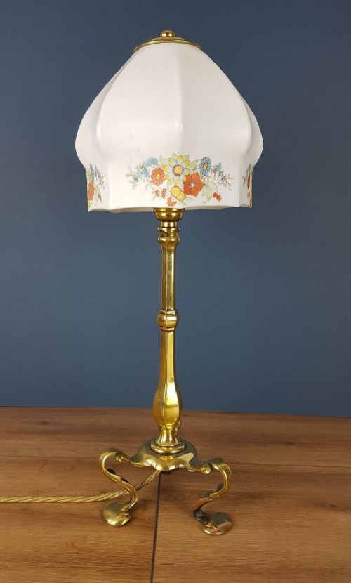 Brass Pullman Lamp with Flower Decorated Ceramic Shade C.1910
