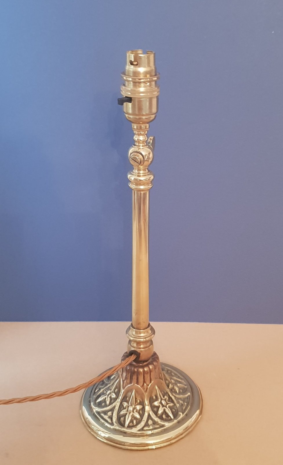 Brass Table Lamp with Decorated Base, Rewired & Pat Tested c.1910